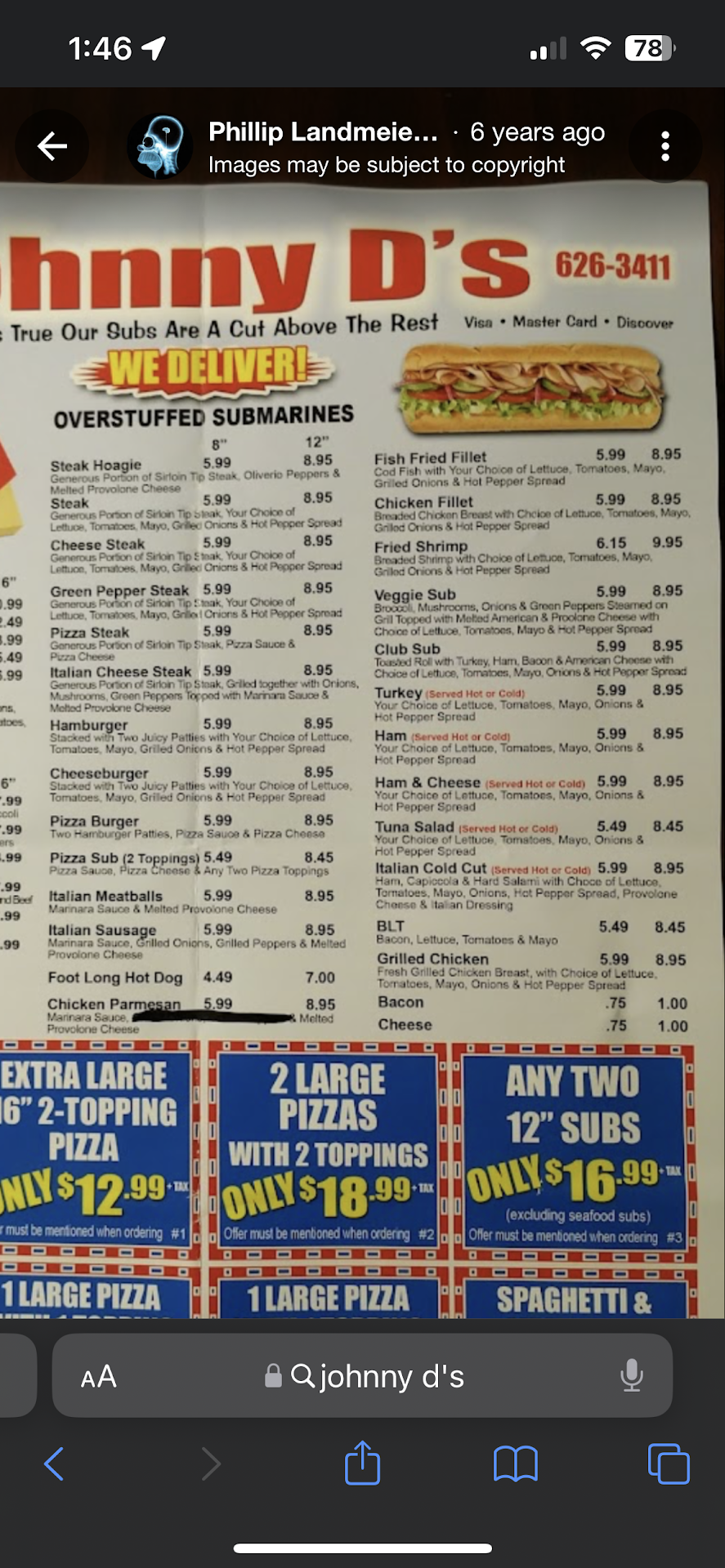 Read moreI called and placed an order for pick up I spoke to a female. I ordered the 12 inch club which comes with turkey ham and bacon its supposed to come with tomatoes lettuce and onion as well I ordered mine with no onion add provolone cheese. Mayo on the side. I also ordered a steak sub for my husband and plain hotdogs for my daughter as well as fries and drinks with each item. Mind you she repeated the order back to me. We picked up the order the total was 33$ and some change I got home and look at my sub and its a turkey sub no mayo on the side no bacon or ham I called and a man awnsered and said " you ordered a turkey sub" I had to fight with this man because I know what I order. Finally he just said " okayyyyy" I will not be ordering from here again. He tried placing the blame on me then on his female employee you should not run a business if you have poor customer service. Not to mention in the previous times I've ordered they forgot the fries. And another order the lathered the subs in butter to the point where when I called today I had to tell them no butter the whole sub tasted like butter...