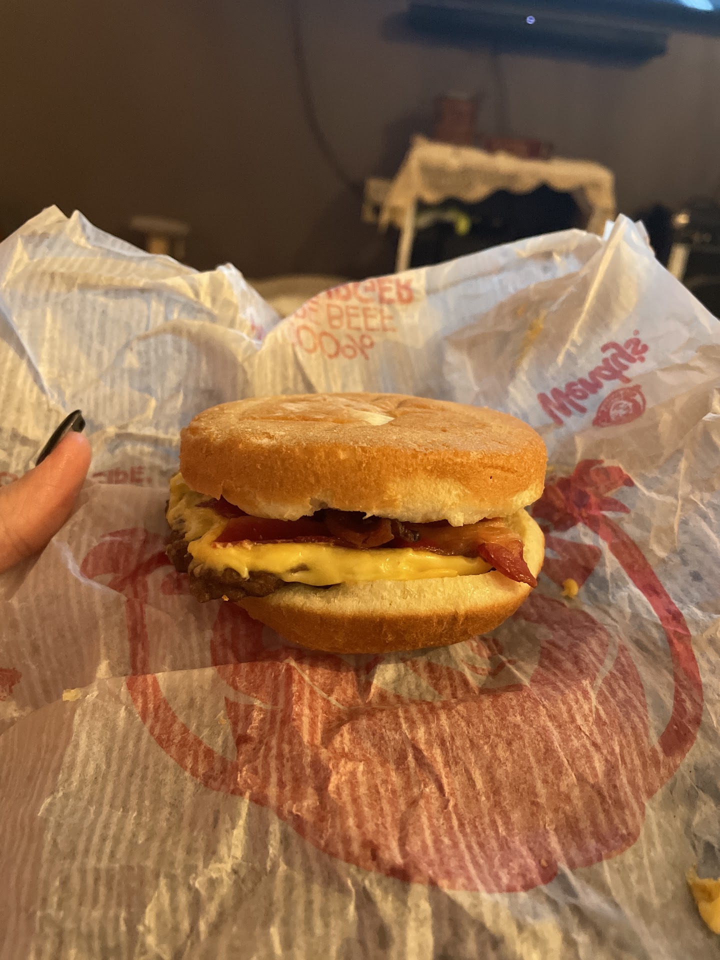 Read moreOrdered 3 jr bacon cheese burgers, with only bacon & cheese. First time around, I only got cheeseburgers. Went through the driveway again, to ask for what I had asked for the first time brought them out I asked if they only had bacon and cheese, they said no. They took them back, this time I got the burgers back, realized they took the burgers scraped the ketchup off of them, and just put on a new top bun, but it wasn’t even the top bun it was one with two bottom buns that’s how I first realized the ketchup was wiped off… & to top it off it was cold. Not much to say ab it, but I feel like the order was simple and it was just halfass work the whole...