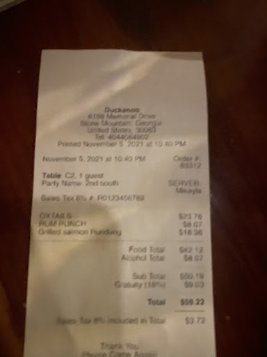 Read moreI went here to celebrate my 28th Birthday and let me tell you I had a blast the food was great the music was on point and the vibe was amazing. I went during the day initially to get a feel for the place and knew right away I would come back my first waitress was Leah and had she been my waitress when we came back it would have been 5 stars. However, when we arrived later that night our waitress was Meelah and she forgot our drink orders, so I had to stop another waitress to get our drinks (Leah) who brought them back in less then a minute. Due to the young lady who was suppose to be attending to us not being attentive and having to ask other staff for attention our group paid for 2 orders of drinks 3 TIMES. Being that it was a celebration for me I didn't come out of pocket at all but it was surely brought to my attention. With all of that being said I WILL be back soon and WILL recommend duckanoo to all of my friends but I will tell them if (Meelah) tries to wait on them REQUEST...