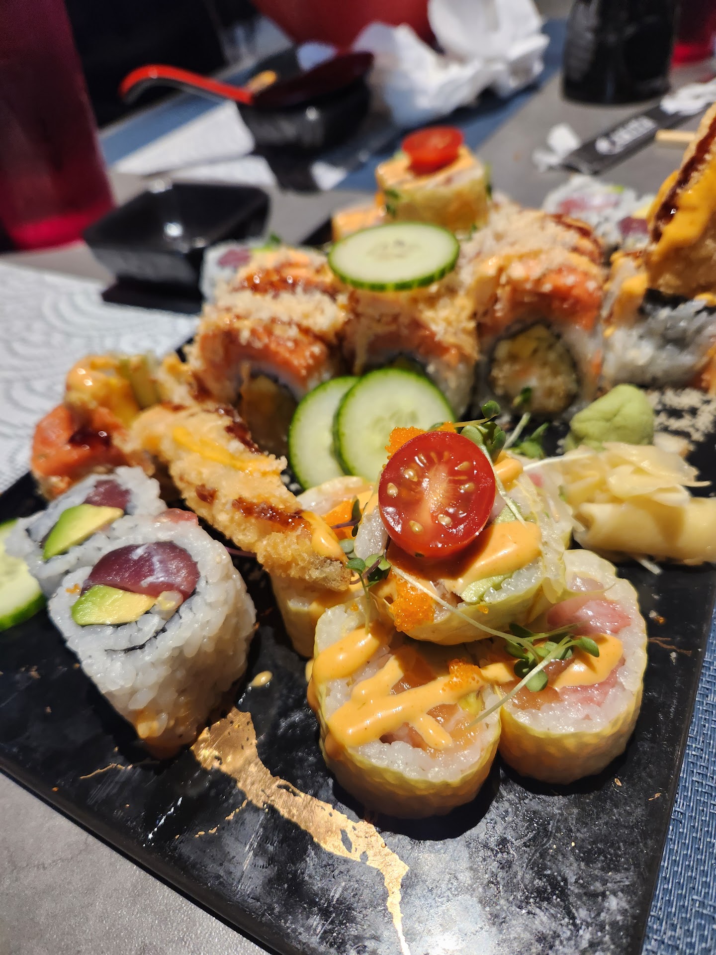 We were seated the table mats were dirty, no one attempted to clean them. I ordered soda water, and the wife ordered sweet tea. I asked about deep fried sushi rolls,the server did not know the difference between a deep-fried roll and a tempura roll. I asked if I want a special roll deep fried, can it be? She said well there is a language barrier but I can ask which roll are you wanting. I said it was just a general question.