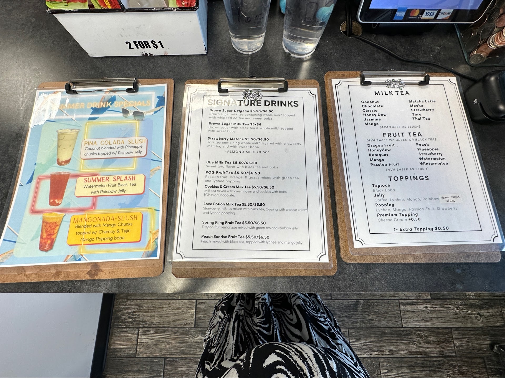 I was welcomed with a friendly hello and if I had any questions and/or ready to order. Being that it was my first time, I was unsure of what to eat so I took some time to gaze at the items on display and a cute family being helped by a family member who was assisting them. I decided to order a brown sugar boba with almond milk…YUM! 😋 Drink order/pick up was on one side of the store. I noticed the SM, MD, & LG box sizes so you pretty much choose what you want to eat and boxed up. I chose the SM fried noodles…a soy or spicy sauce just to give it extra flavor would be delightful to try. Spam Musabi and macaroni salad…Delicious! They’re were day specials listed on a board above the drink cooler. The food and drink total for one was less than $20 and a tip jar at the registers.