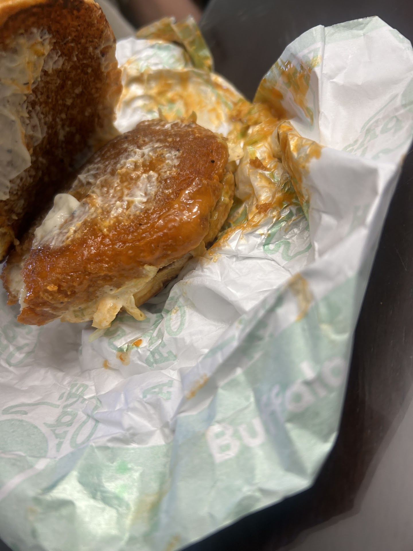 Read moreNormally when we eat here it’s fantastic but not this time, We ordered around 2:30pm the person taking our order didn’t speak up so it was difficult to hear her, we waited for our food about 30 minutes,we had ordered 3 market fresh turkey bacon ranch, during this time there were three cashiers one of them was sitting on the counter, another girl was hugging her and the other was on her phone, very unprofessional and unsanitary, when we got home and got our food it was wrong they gave us 3 buffalo chicken sandwiches, which were poorly made and very messy with sauce all over the place..if I see them there the next time I order I will just drive off.. management needs to be on top of them… the way the food came was...