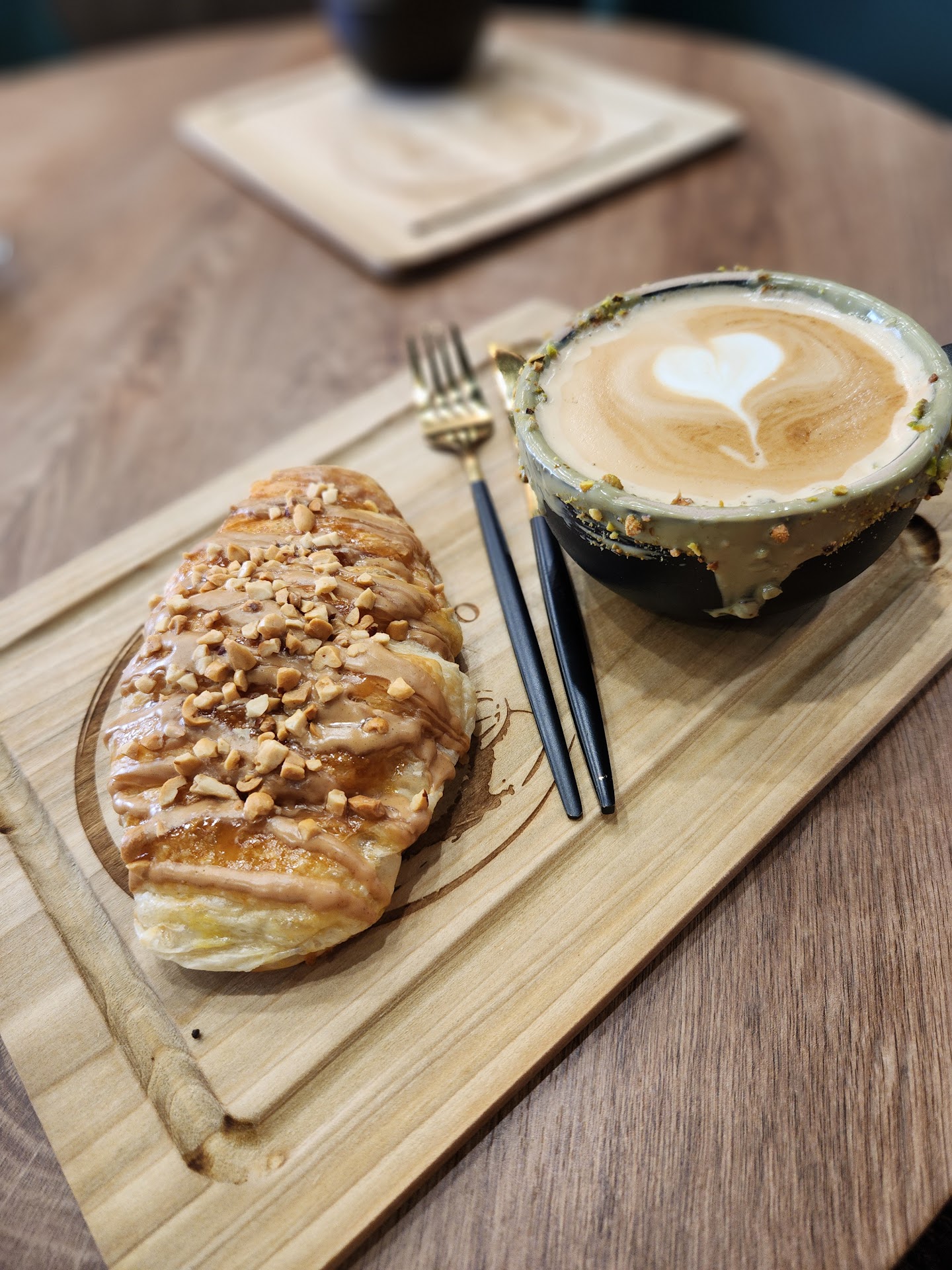 Photos for reference: I got a Coquito Café and strawberry/banana pancake bowl, my friend got a Pistachio Latte and peanut salted carmel croissant. We both loved it and will...