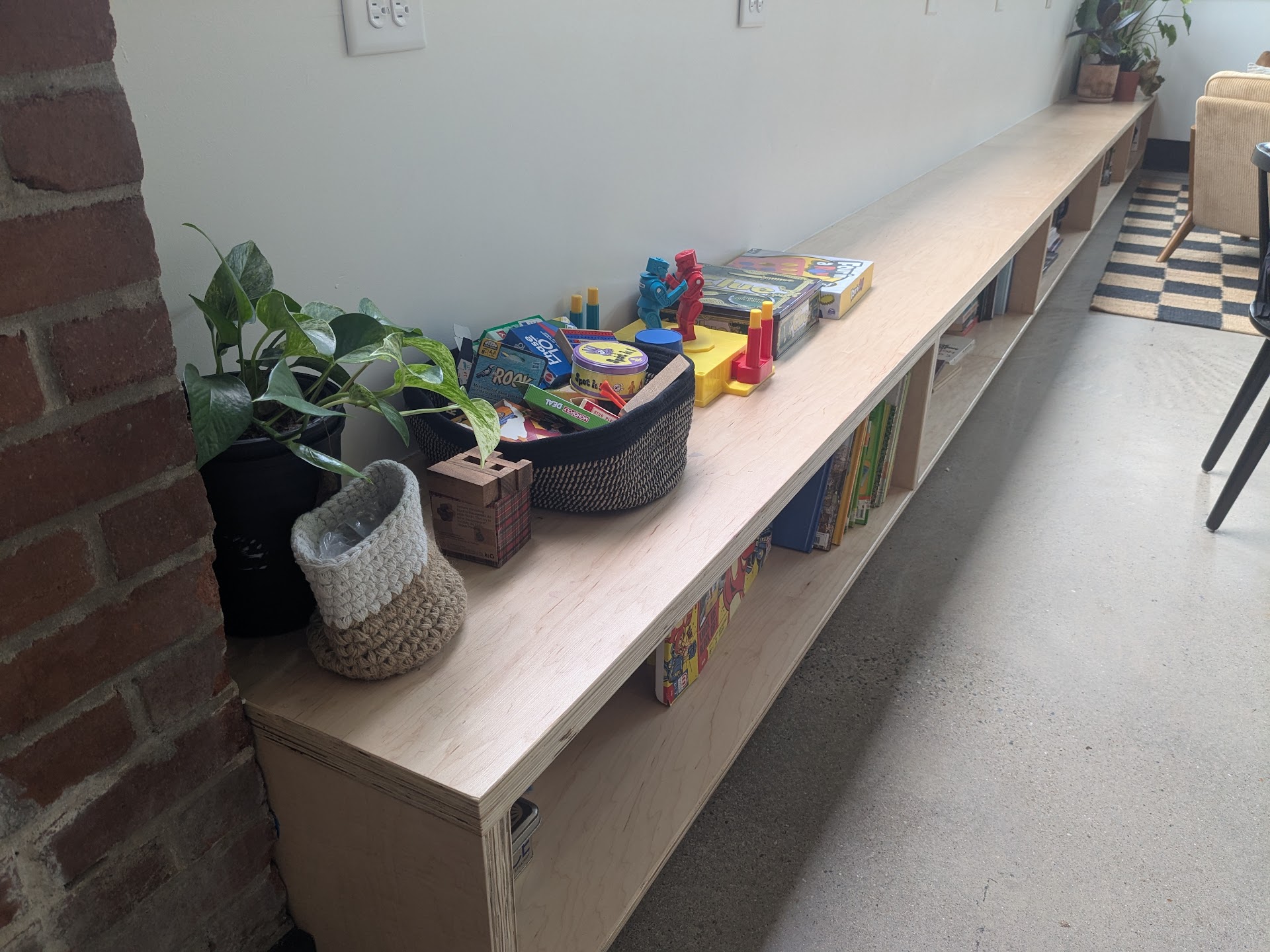 They have activities for kids to stay occupied while there, eco reusable to-go cups and mugs, solid long table for meetings, an impressive bookshelf/bench/shelf that has books for all ages to check out, high top seats for a chat with a friend or someone to do some work/art as they people-watch pedestrians on the street. Even some games and special âconversation cardsâ throughout this place! Definitely get the sense of community and personalness with those special touches.