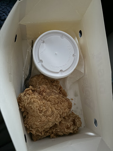 Read moreAfter shopping we went threw the drive through and was told they Had No chicken available.. We would have to wait 15-20min for it to be done. Wouldn't be a good idea with Ice cream in the car. So we ordered online a 12 piece meal with the fixins'. Unloaded the groceries and back I went when the notification came through it was ready.. 45minutes had lapsed... I got there and was told there was no chicken available yet again. Had to wait 20 minutes for me to get my 12 piece in the big box, I already paid online🤦. When I get to Finally eat, No biscuits, No rice and a box full of chicken legs, no wings, just legs... They wouldn't even acknowledge me after telling the coworker outside vaping, she had to take the order to the white boy in the truck. I'm 47 yrs old, though I am Caucasian I'm far from a boy. But she's right, can't do nothing about the racist remark or the missing food. Just won't be back, like Ever again.. Can't even order chicken without being a slur.. sad.. God forbid I wanted what I ordered and paid due to being a white boy I'm not...