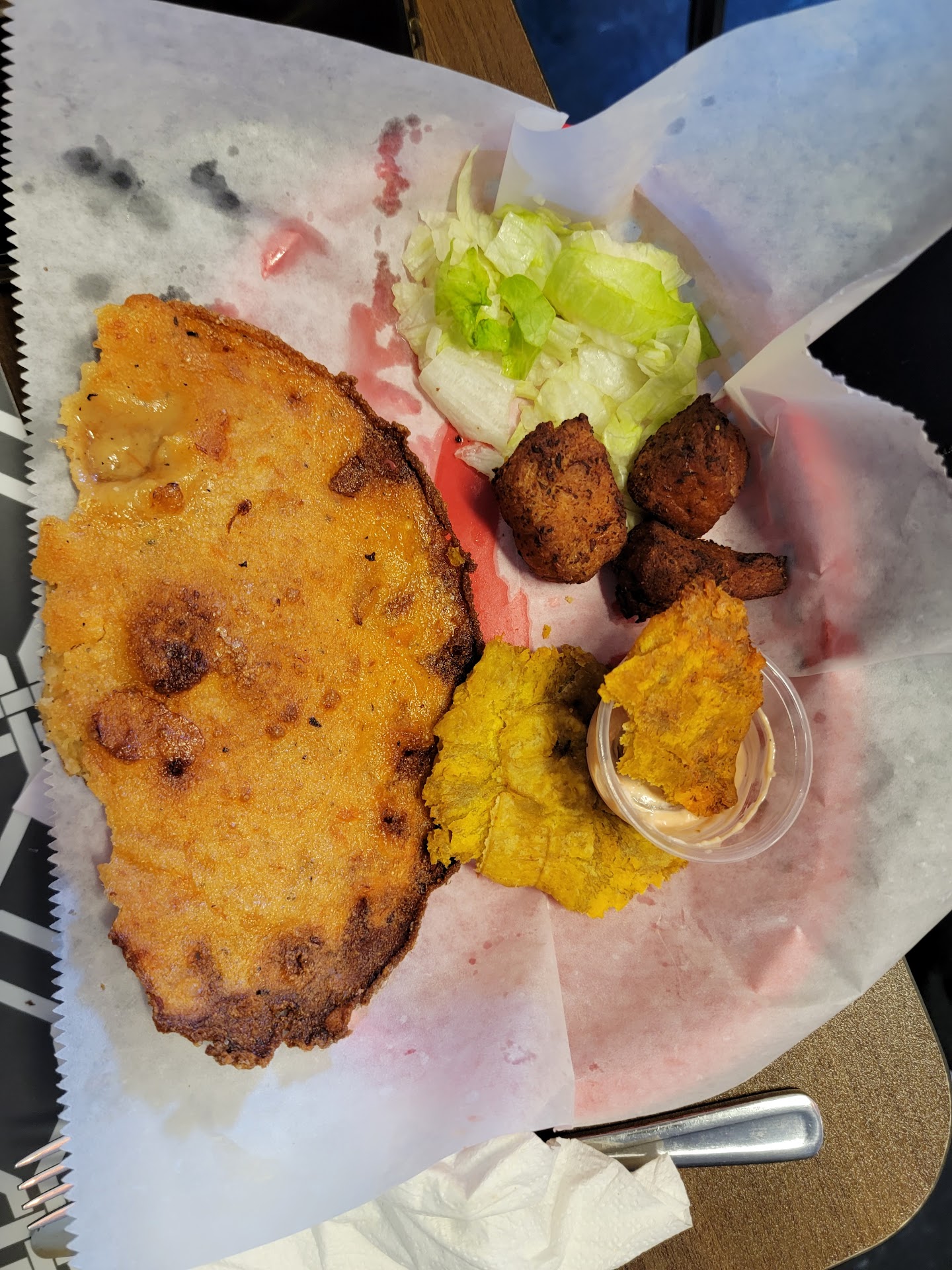 Read moreA quaint, out of the way hidden gem of a restaurant! Located at the corner of Wilma and Rossview road, this local cafe specializes in AUTHENTIC Puerto Rican delicacies. When you enter the non-descript building, you’re greeted with traditional music and a vivid atmosphere. The staff was welcoming and cheerful, ready to answer any questions about the menu and excited to share their specialties. We had the empanadas (beef and chicken) as appetizers to go along with our delicious and fresh mango aqua. The crisp exteriors of the pastries were a perfect canvas to showcase the savory and flavorful fillings. We chose the bistec (steak) and the fried pork chop plates. The plates came with tostones (fried plantains), salad and the pork chop had rice and beans. The proteins were perfectly cooked, but the star of the plate was the frijoles (beans)!!! Now hear me out, not normally what would stand out at most establishments, these frijoles tasted as if they had been cooking for hours and yet the potatoes were perfectly done. Do yourself a favor and find this hidden gem, and add it to your regular rotation of local spots to support. Overall, it is a fantastic and delicious place to have lunch or dinner; I am already planning to come back Saturday for...