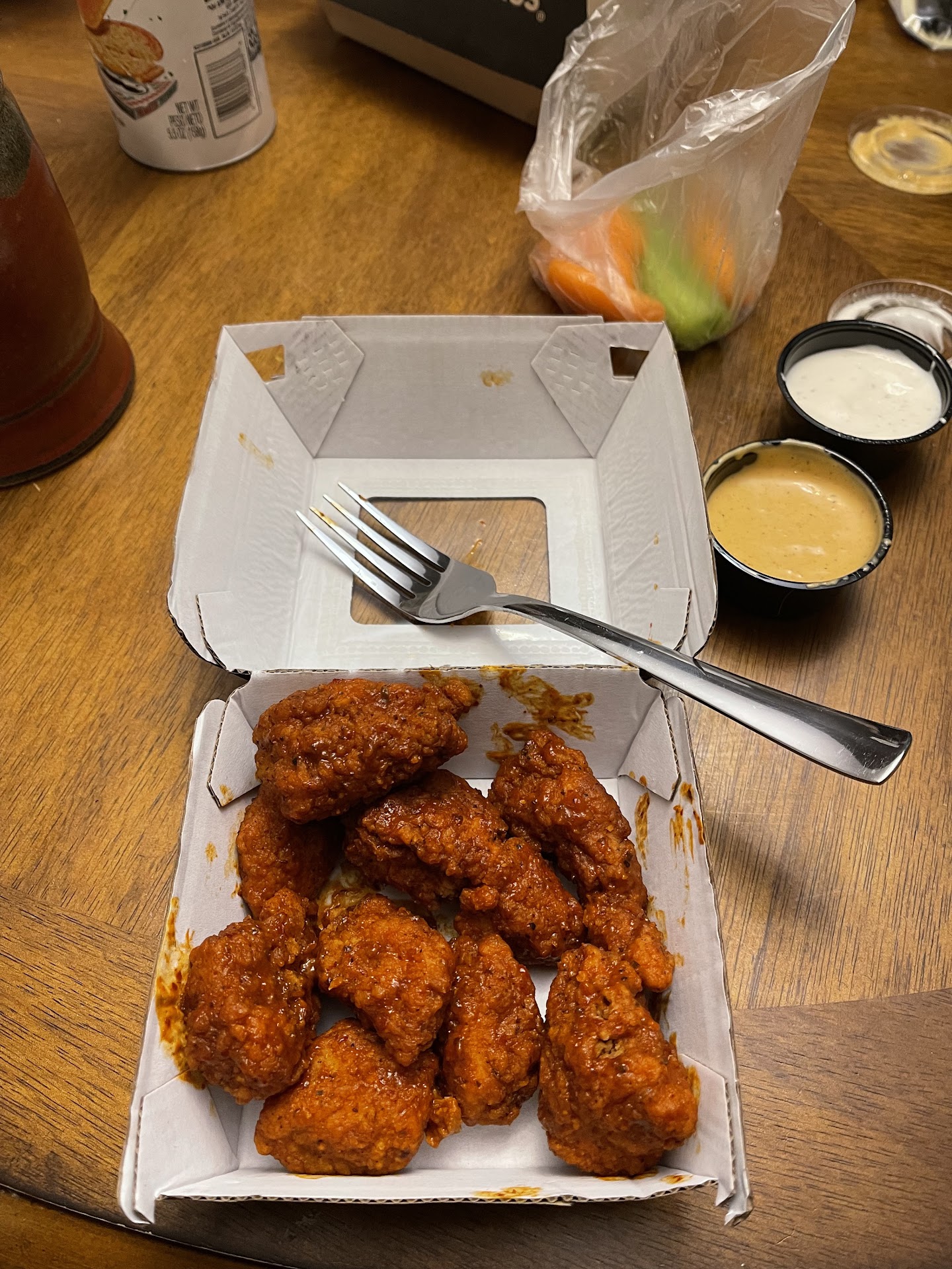 Read moreThis was my first time being here at this location and when I say I’ll never be back! I got there, in which I was just being a girl in my own world and ordered at the takeout register. I did not know that the carrots and celery were extra. I stated this MANY TIMES. However, no one, not even the manager, who had to take it off, made me feel like it was a honest mistake or gave gentle customer service. This lead to me ordering my food at 7:21p and not getting it til 8:07p. Literally EVERY SINGLE PERSON that came in after me got their food as soon as they walked in, but mine was pushed back. When I asked how long it will be, that is when the young lady at the takeout register began to show concern and was nice enough to check on my food and said 5 more minutes. It was indeed not 5 more minutes. That is when I got with my receipt and was about to get a refund, but I told the young lady, “if my wings are cold, while y’all waiting on my Buffalo Chicken Wrap, I’m sending it back.That is when she said they were going to have the wings fresh. For the first 30 minutes, the manager saw me sitting down and did not once approach me or give good customer service AT All. ONLY when she saw me standing up waiting by the register is when she wanted to approach me and state, “Ahh I really like your shoes.” I in fact ignored her because she walked past me about 5 times when I was sitting and did not say a word, even looked at me and kept walking. I was also on the phone with my sister to be the witness to everything. The only person who was initially welcoming was the hostess at the front door. EVERYONE ELSE was not welcoming and looked at me with a blank face. I WILL NOT BE GOING BACK. The service was trash but the food though was 7.5/10. I had a Buffalo Ranch Chicken Wrap with fries and...