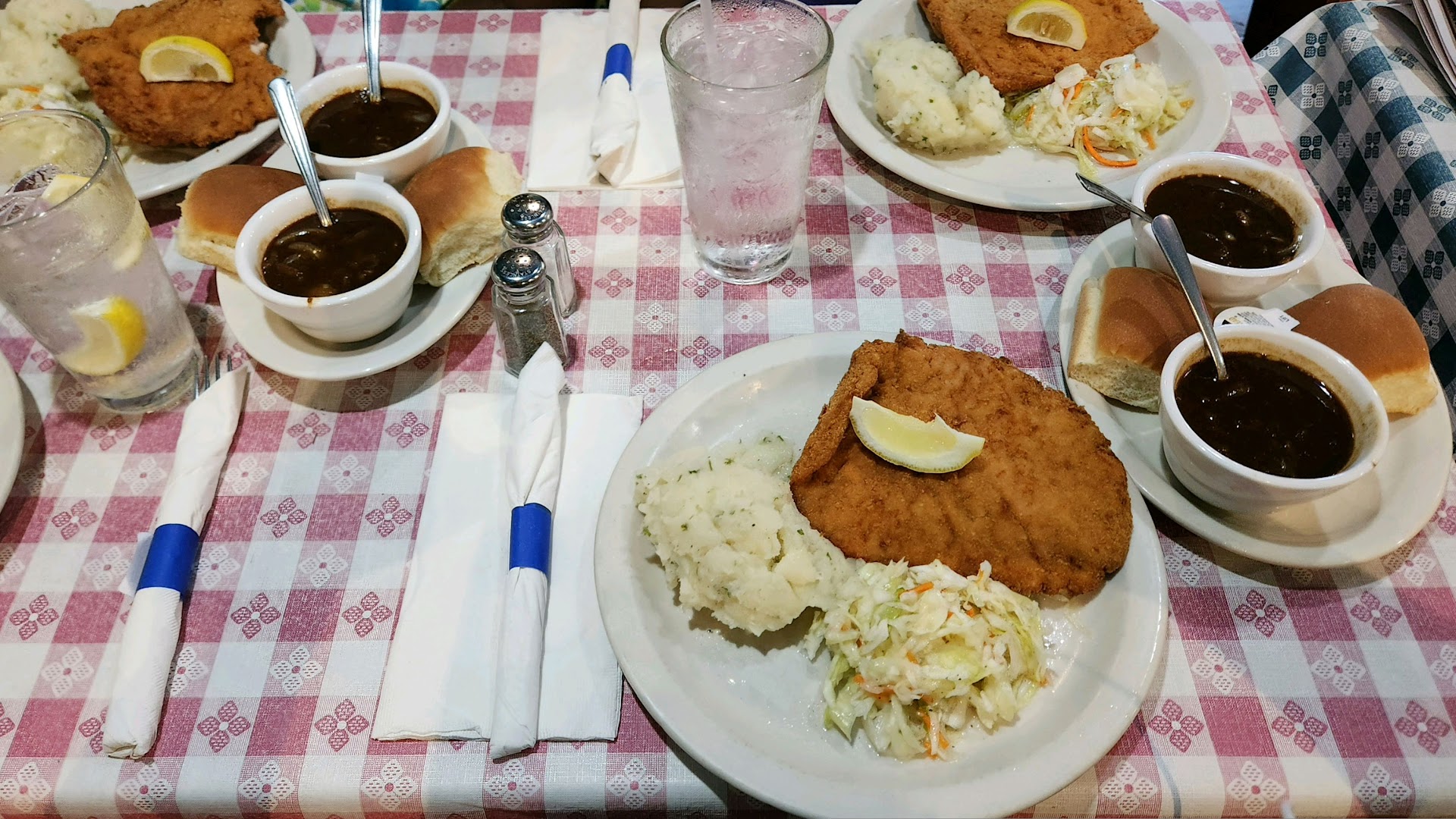 Everyone in our party ordered the Jager Schnitzel dinner. It comes with gravy, German potato salad, and coleslaw. Again, my second visit did not disappoint.
