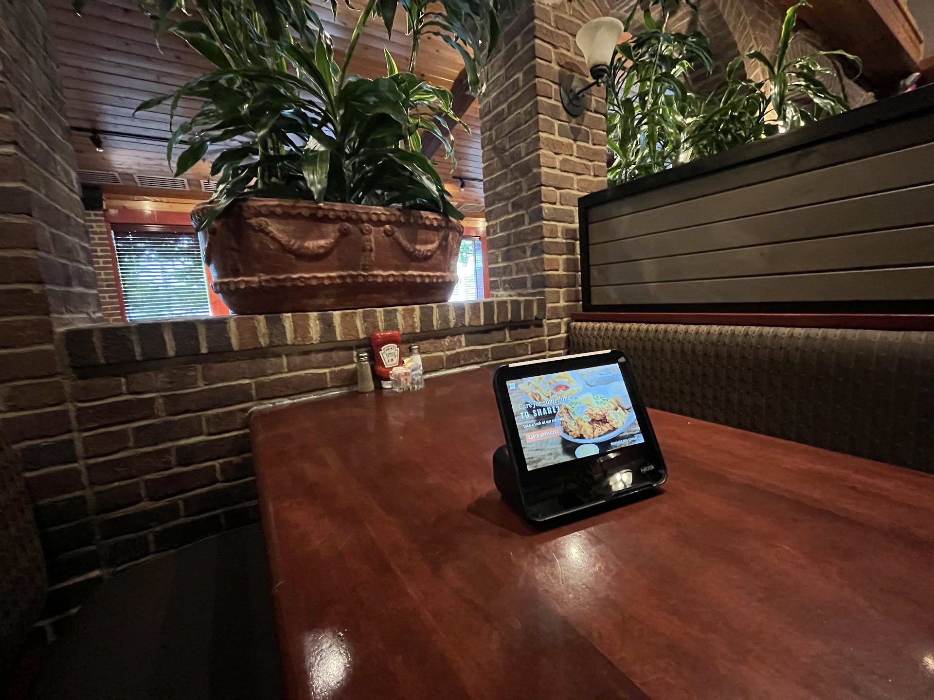 went for early week night dinner. hostesses greeting in friendly, enthusiastic manner. was promptly seated. had a professional server. food was plentiful and quality all right. entrees were enough to be a shareable. atmosphere pleasant, dining room appeared clean and decor was attractive. really liked the plants and ambiance. i really liked the pay at table feature. the honey croissant rolls and sweet ice tea were good.