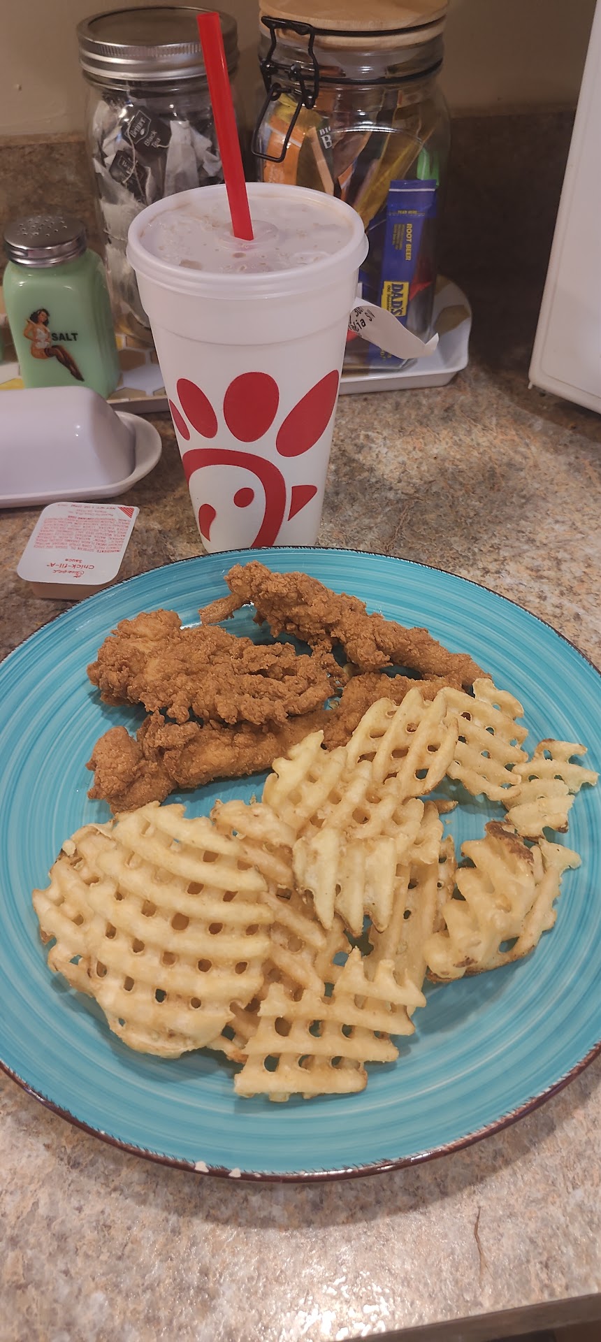 Read moreRead moreEverything!! The Drive-Thru is my main way to get the good food, but indoors is just as awesome, too. It's just a small diff in quickness, but sit down is supposed to be more laid back & their not a quick-trick, fast food place that's slow or whatev... it just not as fast as outside. But accurate orders in a timely manner is the best to ask for & it's really better this way!! But, they've instituted a quicker Drive-Thru method where the Menu Board works on one order, while a person outside does there cat behind it. There's a 2nd Drive-Thru line that also does it that way. When it gets busy, that's when this policy happens EXCEPT... When the Menu Boards aren't working correctly or are out if service, or it's too busy that way! ... Then, the person goes car to car in order down the line. The Pick up & pay orderalso changes. A car at the window pays & there's also 2 people outside going to the cars behind it, getting pay & having cars go to two designated pickup stations far up front of a main window & other is to the right pull up to cones, the same way to wait. One major change this has over the many other Drive-Thru's & before placing order at either the window or w/the person taking your order, so when you get to the window|person for pay|pickup, you say your name 1st, then give the Payment method(s) before getting your food. At the beginning of this a couple to a few yrs ago when this 1st began, last week was the very 1st mess-up I've EVER gotten!! EVER!! I think; Instead of fries I got someone else's fruit cups. So I'm not sure if the person getting my bag for delivery & the other person getting another car's bag to their car, picked up the secondary bag w/fries & one w/cups were mixed up only buzz the window, ALSO had two bags, line both waiting vehicles. So, I want so upset to go back, even if I could... or just let it go, like I did. It was only a mistake and I'm as human as the offender if this mistake was, and I'm hoping other cars were just as forgiving. I found out after I got home, but I had the main reason to go to Chick-fil-A in there 1st place- Their delicious 4 pack of Chicken Fillets... both of them. I'm sorry this was so long but I had to show you that there was a reason, to make this review give you not only my News of note of the staff and restaurant as well as one of my many personal experiences at THIS SITE. I personally, have been a regular customer to either of the two Clarksville Stores which were on each sides of the Restaurants Clarksville. It really began at the Greetree Mall while working at Walgreens. When I quit just b4 the Walgreens moved over to Eastern Blvd and Lewis & Clark Across from McD's. I started going to CFA, or Chick-fil-A, over on Veteran's Pkwy when my Dr moved to new ofc & he's the Boss now so, it's closer to I•64 right off, onto I•65, so it's not as far as it was & I have extra time to get home, I was able to stop on the way & still get home early than ever b4. I have that new system to Thank for that, & is anotherreason I love that CFA on Veteran's Pkwy so much! I totally reccomend it from my own experience & point of view!! A Review...