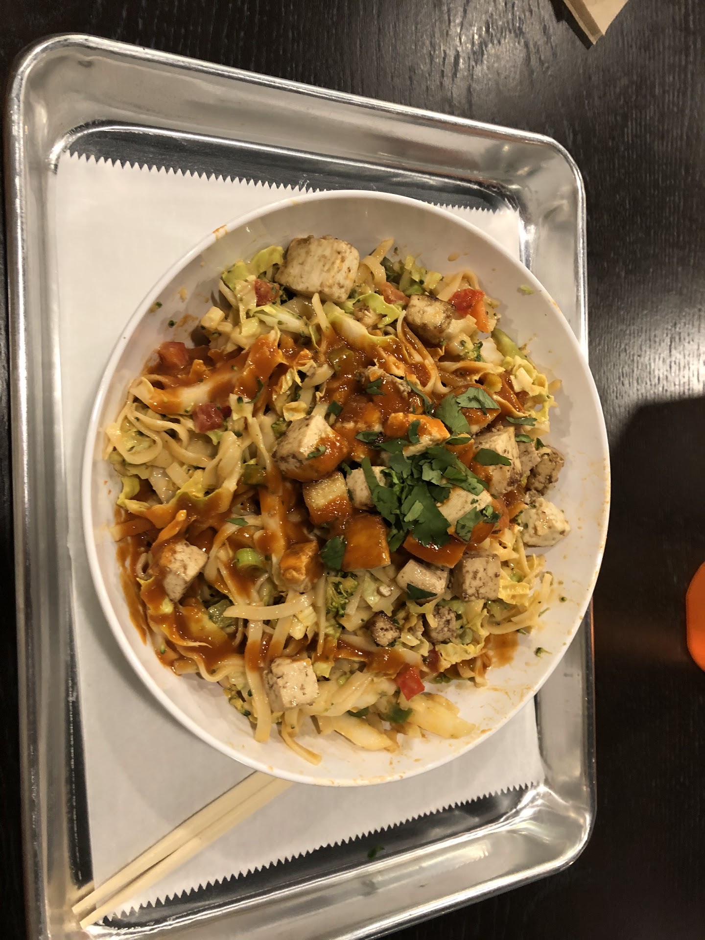 My personal favorite part is that they list items on their menu that are vegan, and have a full allergen list online. There are no hidden “gotcha” animal products on their menu. The staff even knew which pre-made bowls that could be made vegan just by switching out chicken/beef for tofu. With that said, I ordered the spicy Thai chicken (sub in tofu for chicken), and it was fantastic!! I got the large bowl, and had leftovers to take home. My husband made his own bowl, and the staff gave recommendations as to what to add to the flavors he already likes. We also tried the roasted sweet potatoes, which are to die for. We would go back just for the roasted...
