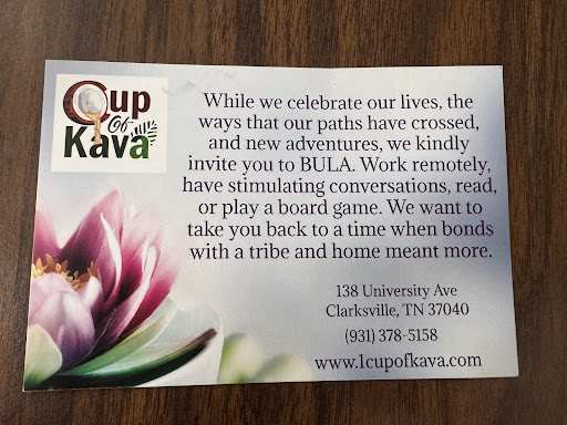 Read moreAs someone who recently relocated to the Nashville area from Florida, I know a good kava bar when I see one. Cup of Kava is second to none. From the quality of their drinks to the impeccable service, Cup of Kava never disappoints. I have become a weekly regular who enjoys the atmosphere and product they serve. I encourage all who are looking to try something new or are seeking an alternative to alcohol without the hangover, you have to give Cup of Kava a try. It’s an experience within its own with the most friendly staff. Shoutout to Michaela and Natalia for always creating a welcoming environment and...