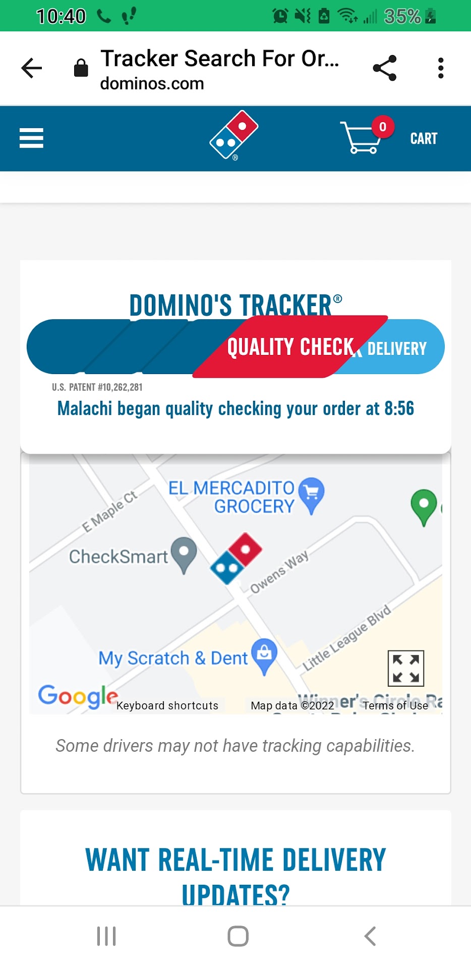 If I could give 0 stars, I would. Shame on you, google, for screwing with my most truthful opinion. I order online, delivery- two medium pizzas and their brownie/cookie hybrid. Two hours later, Iām on hold with the store for over 10 minutes, and I decide to drive to the store. They are still working (4 employees hovering over a register, I guess thatās working), but they have the door locked and I am standing out the cold, fuming. Finally, a scared-looking employee comes to the door to ask if I am picking up. I reply that I actually was waiting for a delivery from 2 hours ago, and Iād like to speak with a manager. He promises sheāll be right out. Of course, she is not. Eventually someone lets me in, and I ask for my order, no less than three times before she (manager) understands what Iām asking. I tell her my order has been sitting over an hour and I want to check the pizzas before I leave. She immediately claims they havenāt (BS!), and the tracker lies. Good information for all of you Dominos regulars out there! The pizzas are not correct, they are very lukewarm, and the cheese is congealed, as though itās been sitting for over an hour (noā¦couldnāt possibly beā¦). I ask if she is authorized to issue a refund and am met with a very hostile āWell, why would you need a refund?ā Ummmā¦I just told you my pizzas arenāt right and they are old and cold. She shrugs it off.