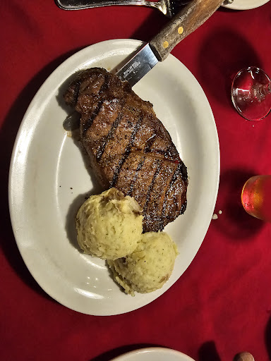 Read moreTo start the good; Servers were well mannered and friendly, and the environment was tenebrous with piano playing not to loud for ambiance and was nice. Now the bad; The food on the other hand was not good at all. To start the salads are hit or miss, my wife received a fresh looking leafy salad where as I received a wilted salad that was turning rusted red and ought to have been gotten rid of. The steaks we received were again hit or miss. A regular steak seems to be safe bet but isn't anything astounding. Beware of their "aged" steaks, as this seems to be a bold faced lie and just means a steak that has been pounded flat with a butchers hammer (also know as a meat tenderizer, meat mallet, or meat pounder) to give it the tenderness associated with an aged steak. They then smothered it with pepper to make it impossible to taste anything other than black pepper with no hint of any kind of aged flavor. Another quarrel I have is any steak that cost $35+ ought to be trimmed of any excessive fat or gristle that should not even be on any steak from any self respecting steak house. Last are the sides which aren't much better than the steaks. Their steak fries are frozen bag fries that can be bought at any supermarket and had the taste of being in the freezer in an unsealed bag for too long. The garlic mashed potatoes are also something I can't quite figure out. They have the grainy texture of instant potatoes from a bag with some real potato mashed in to try and pull the wool over your eyes if you just look at them. Conclusion; I would have no problem with this "steakhouse" if they either adjusted their prices to reflect the cheap and inexpensive ingredients and properly listed their steaks (call it a tenderized steak not aged) or increased their quality of food. Its a shame that they could offer real aged steak if they wanted fairly easily thanks to the modern age but they choose to lie about their "aged" steak. I can not rightly recommend this as a place to eat even though the waiting staff and ambiance is fairly nice the food is just far to low of quality for the pricing and would have much rather eaten at a chain...