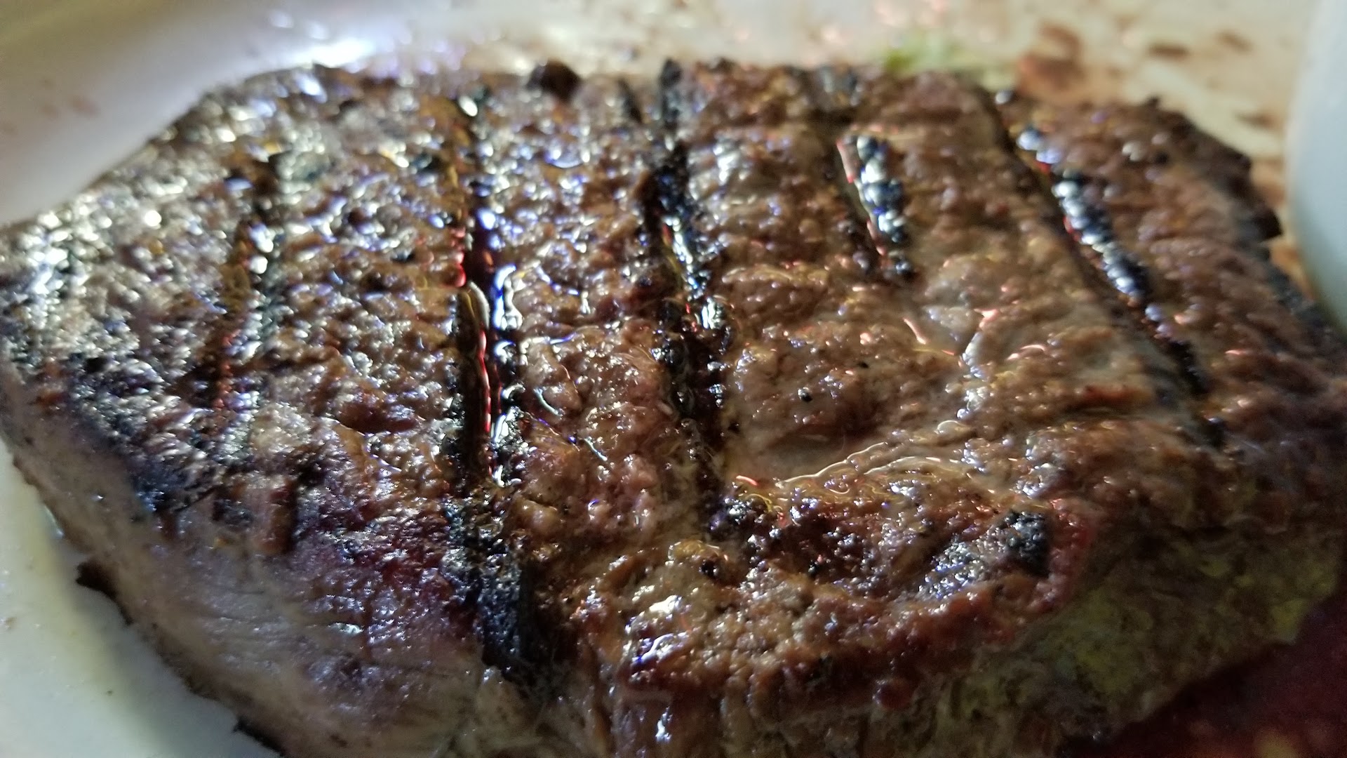 Read moreTo start the good; Servers were well mannered and friendly, and the environment was tenebrous with piano playing not to loud for ambiance and was nice. Now the bad; The food on the other hand was not good at all. To start the salads are hit or miss, my wife received a fresh looking leafy salad where as I received a wilted salad that was turning rusted red and ought to have been gotten rid of. The steaks we received were again hit or miss. A regular steak seems to be safe bet but isn't anything astounding. Beware of their "aged" steaks, as this seems to be a bold faced lie and just means a steak that has been pounded flat with a butchers hammer (also know as a meat tenderizer, meat mallet, or meat pounder) to give it the tenderness associated with an aged steak. They then smothered it with pepper to make it impossible to taste anything other than black pepper with no hint of any kind of aged flavor. Another quarrel I have is any steak that cost $35+ ought to be trimmed of any excessive fat or gristle that should not even be on any steak from any self respecting steak house. Last are the sides which aren't much better than the steaks. Their steak fries are frozen bag fries that can be bought at any supermarket and had the taste of being in the freezer in an unsealed bag for too long. The garlic mashed potatoes are also something I can't quite figure out. They have the grainy texture of instant potatoes from a bag with some real potato mashed in to try and pull the wool over your eyes if you just look at them. Conclusion; I would have no problem with this "steakhouse" if they either adjusted their prices to reflect the cheap and inexpensive ingredients and properly listed their steaks (call it a tenderized steak not aged) or increased their quality of food. Its a shame that they could offer real aged steak if they wanted fairly easily thanks to the modern age but they choose to lie about their "aged" steak. I can not rightly recommend this as a place to eat even though the waiting staff and ambiance is fairly nice the food is just far to low of quality for the pricing and would have much rather eaten at a chain...