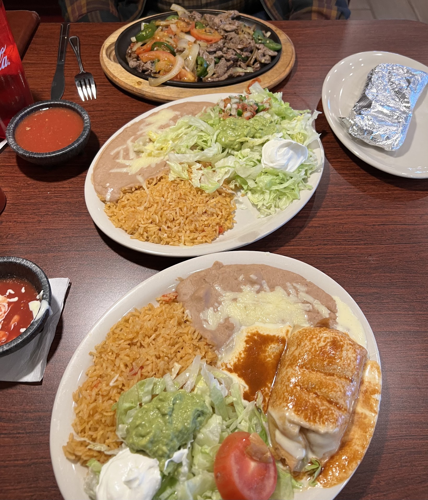 I was out school shopping this week and my youngest wanted to stop and get Mexican food for lunch. When we arrived there was only one other party in the section we were in. Subsequently, two other families, along with an individual customer came in between the time we sat down and the time we ordered our food. I’ll have to admit I was extremely disappointed in the service. We started to order and our waitress said hold on a minute and left abruptly. She did come back a few minutes later with an appetizer and asked for our order again which was weird. Then it seemed to take longer than normal to ask for another basket of tortilla chips and to receive our food. And let me tell you when I say the food was bad, it was bad. I can make a burrito have more flavor and taste better than my son’s $15 burrito gigante. The ground beef was absolutely flavorless, just like the steak fajita I ordered. Everything we finally received was just plain bad. No flavor whatsoever and didn’t even look appetizing.