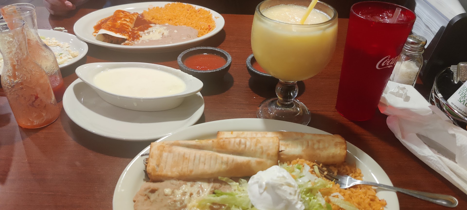 Read moreWe were the only ones in the restaurant so the waitress should have been great. I told her I wanted lime with water and she brought lemon. I asked for another hot salsa 2 times and the girl that brought out the food went to get it. We didnt have plates and had to ask the girl from the kitchen, she brought 1. The jumbo margarita had little tequila in it. The food was 44.00 for 1 steak fajita to share, 2 extra tortillas, 1 jumbo margarita on special and 1 queso. While the food was good it was overpriced and not enough alcohol in the drink with poor service. I had to yell for the bill and a box, our waitress was where she'd been the whole time, talking behind the bar. Maybe she doesn't normally waitress is all I can come up with. This is the first time my experience wasnt great. I hope it's the last or we...