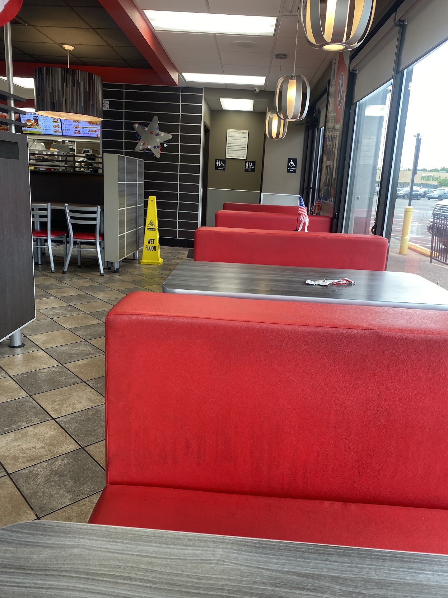 Read moreShout out to the employee wearing the beige sweater who took our order this evening (2/3/20) and even brought our meal to our table. I wish I got her name! Very polite, professional, and personable. Participating Hardee's gave free Beyond Burgers with the purchase of a large drink today, so we figured... why not, give it a shot? So glad we did. The burger tasted awesome! Fresh, crisp lettuce, fresh tomato, onion, pickles, Beyond patty with cheese, and mayo on a lightly toasted bun. When going to a fast food joint, naturally, your expectations are not too high. But our sandwiches were made with expert care. Not too much mayo and not just slopped on, either. Our burger looked very similar to what was advertised online... something I've NEVER witnessed at a fast food restaurant. And the fries were hot and crispy, not limpy, and perfectly salted. Needlessly, we were pleasantly surprised, hence, the detailed positive review. As for the restaurant itself, the soda machines could use an update and the dining area could've been a little cleaner (napkin dispenser on our table was very dusty). We didnt use the bathrooms so I can't comment there. But, the establishment is wheelchair accessible and is a good place for kids (no play...