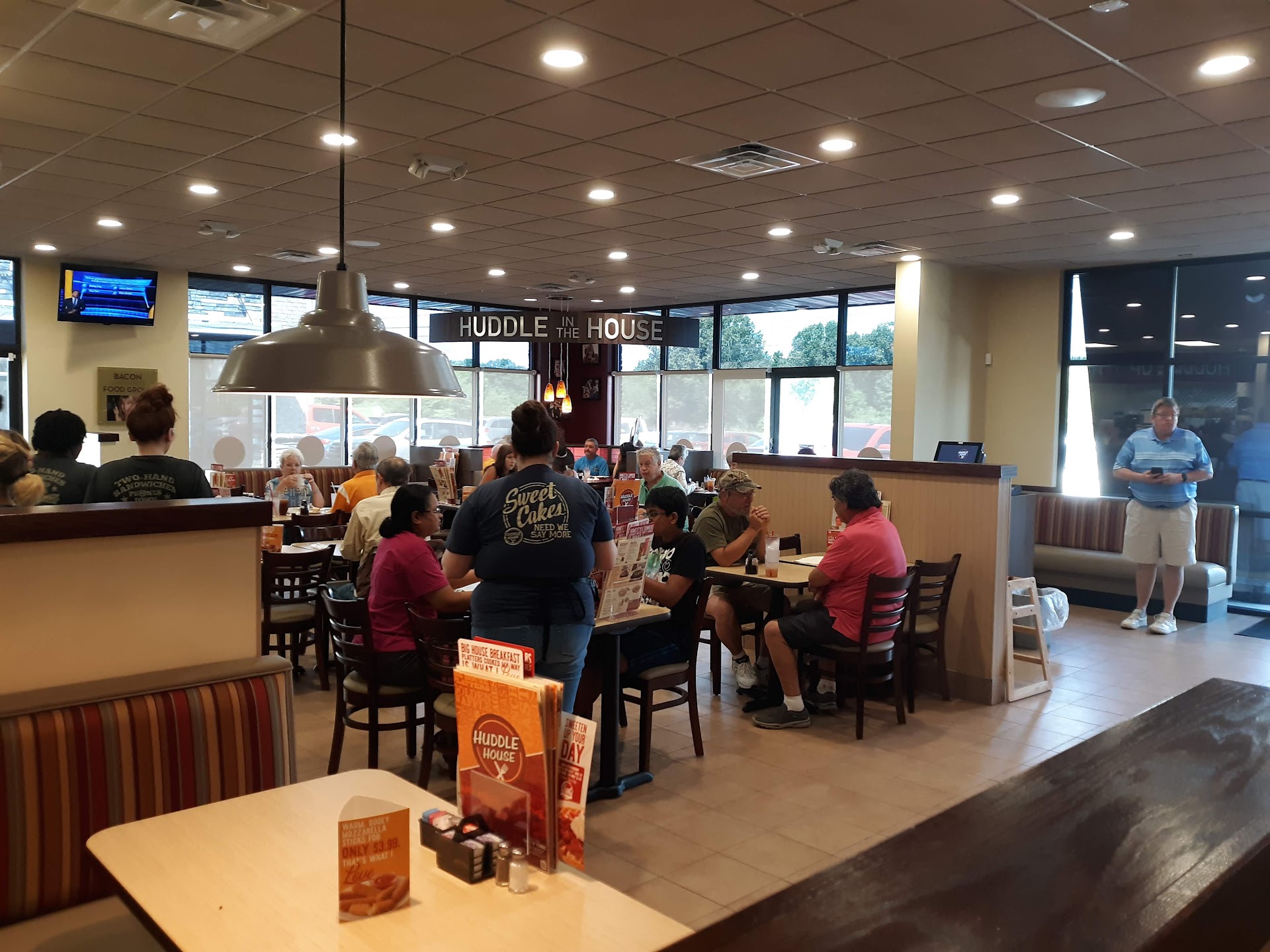 Read moreWe (party of two) walked into Huddle House for the first time. The seating lady was frazzled on seating us, she said “here” then “oh never mind someone is sitting there” and grabbed a laminated seating chart trying to figure out where to put us for a few minutes and seated us elsewhere. So right off the bat, not so great. We waited about 25 minutes before even getting drinks. 15 minutes before getting straws for our drinks. When we were ready to order and our waitress finally came back to our table, she was just laughing about everything and making jokes about forgetting straws. Earlier, before even asking us for drinks, she also specifically asked if we had been there before and we told her no. You would think, knowing it’s someones first time at a restaurant, they would at least try to give good service. Nope. She gave us each other’s drinks and food when it finally did come out. So she wasn’t listening. Some people had been sitting longer than we had and had not even had been approached for drinks yet. Meanwhile, a crowd of the staff was huddled around the kitchen window waiting for food to come out. Maybe that’s how the establishment got its name. Everyone was a chicken with their head cut off. The food was decent. You’re better off just going to Ihop or Cracker Barrel honestly. At least there the service is prompt and the food is great.