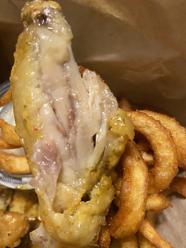 Read moreI wouldn’t normally leave a review either but this is my 2nd or 3rd time giving it’s just wings a chance and all 3 times the wings are completely trash. This time I used DoorDash to get it. No sauce, wings are literally like eating tree bark. I honestly don’t know how you can be this bad at making wings unless you’re intentionally trying to screw it up. Look at the photo. What is that? You try to bite into it and it is rock hard.