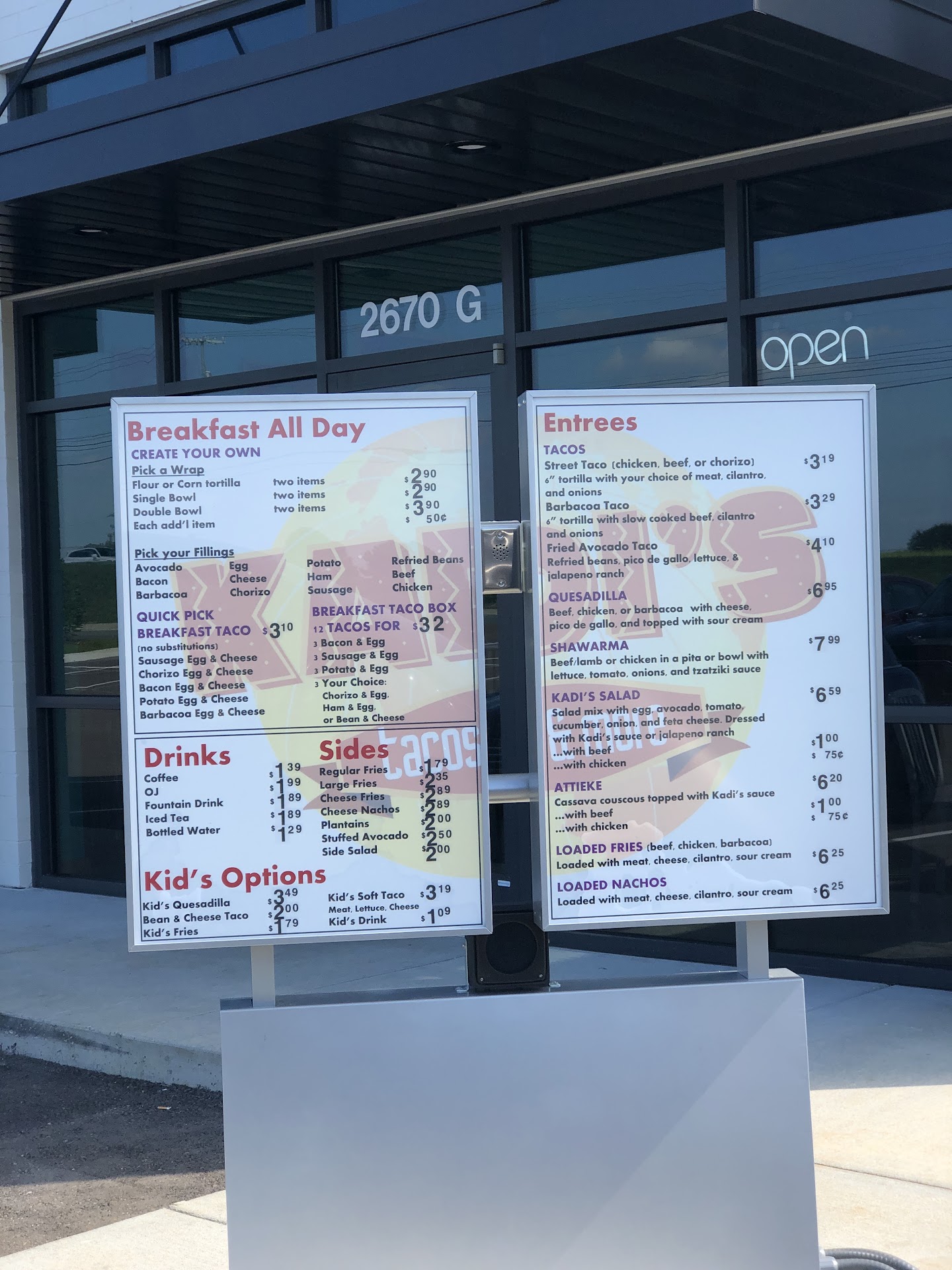 Read moreThis is NOT your typical mass produced Mexican restaurant. It’s 100 times better! This is a great tasty treat tucked into The Village Plaza in Sango. Their breakfast menu is available all day with a variety of breakfast burritos options to choose from. Their lunch and dinner menu offers tacos and burritos from a choice of four different meats. They also have a couple of African inspired dishes and a variety of sauces. Everything is freshly prepared and the flavors are well balanced. The burrito was filled with the perfect amount of food and no one food item in the burrito overpowered the other. The burrito shell was fresh and tender. It held the food to the last bite and we were not left with half the burrito filling on our plate. Food presentation was appetizing and quality of food ingredients left us satisfied and wanting to return. The absence of greasy food was really nice. The salad was fresh and prepared with care. We chose Kadi sauce for the dressing and it was so fresh and refreshing. The service was excellent and helpful. We highly recommend Kadi’s Taco’s and More and...