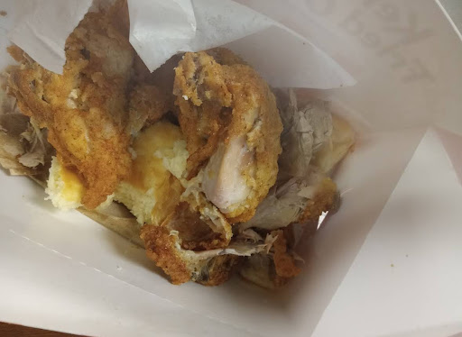 Read moreLove the potpies! The crust is perfect. Wish there was more chicken in them. Chicken wise: The original recipe is the best. Restaurant always seems clean. Staff is hit or miss. I just went to the one on Covert & 41 twice last week. First time was iffy. Woman finally came to the counter after 3 minutes of waiting. I saw no one in the store. She came in from her car outside. I ordered the $5 fill-up potpie. Gave her $10 & change needed $5 back. Had to wait until the guy in the back who was flouring the chicken it turns out to ring me up and give me my change back.... Where was he at to start with? I came in I'm sure that there's a door bell or something in the back. Why was the lady outside just smoking sitting on her car and she waited on me but couldn't ring me up? Between me and my girlfriend we come 5+ times a month to this location. I'm going to be doing it at a different time because of this.