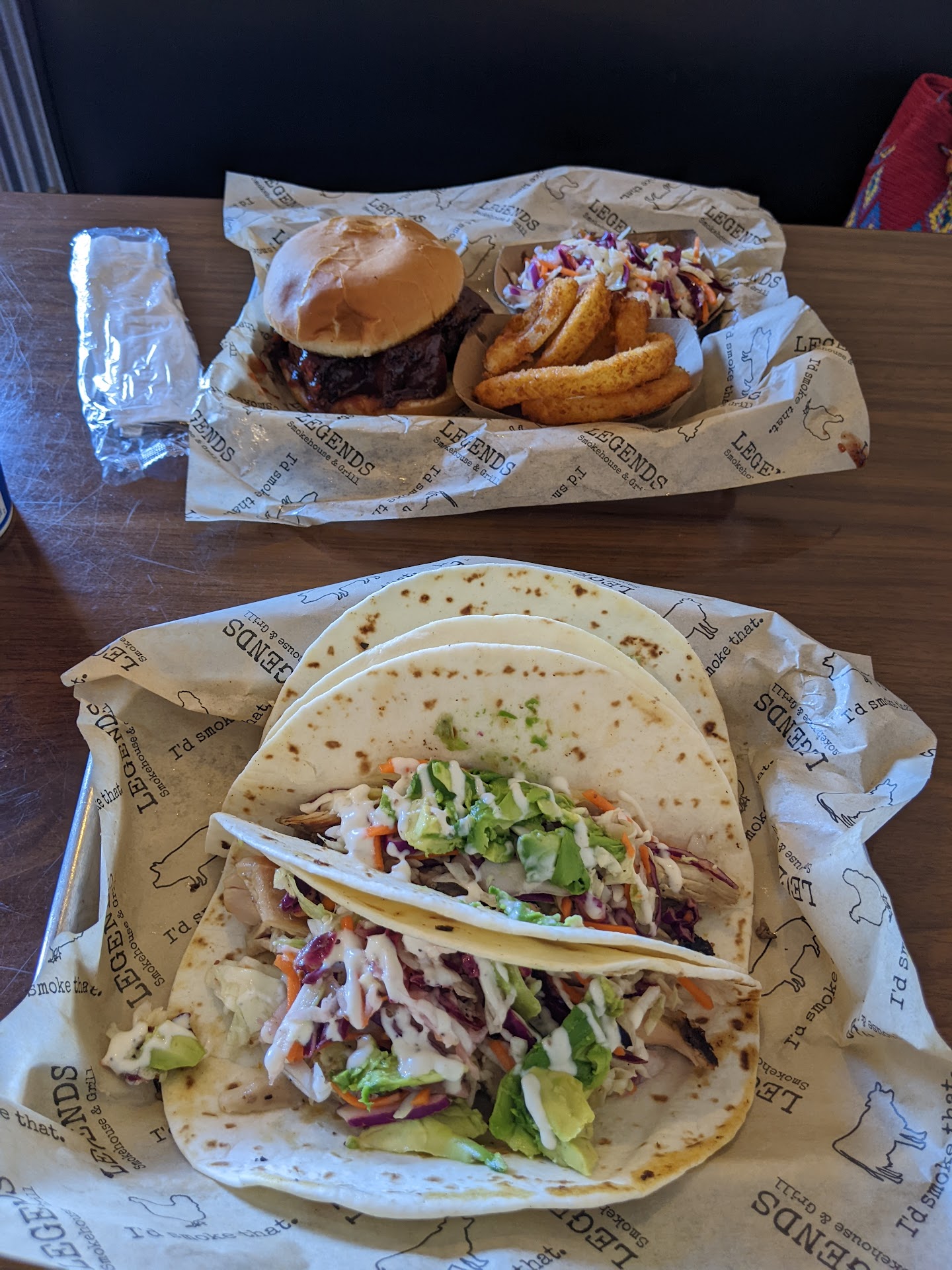 Read moreThis is not BBQ. The wait staff is brand new (as of this morning) and the older newest person is training the younger newest person. My wife ordered "Burnt Heaven" but it was a trip to the other place you go when you are bad. Large, fatty, heavily sauced cubes of roast beef with a minimal touch of char. Sauce was good, but burnt ends it is not. The side of onion rings was sad. Chewy is not a good attribute for onion rings straight out of the fryer. Obviously cooked from frozen in stale cooking oil. The slaw was colorful and crisp, but there was a slight flavor in it I just couldn't place. My three chicken tacos were very good! They had the aforementioned slaw as a component, but an application of their sauce from the bottle on the table fixed it. OK, staff is new which is OK because we made a point of telling the lady at the register this was our first visit. Our warning didn't help much. We ordered and paid (and I joined their loyalty club). They handed us a number and we found a table. Well, we didn't wait for our drinks (our bad) but when another server brought our order she didn't bring our libations. My wife asked where they might be and the server told us to go back to the register to retrieve them. When my wife went to the register, she couldn't have my beer because she wasn't the one who ordered it. So, I went to the register to be carded. I paid a tip for service, so I have no idea why she just didn't bring the drinks and card me at table side. Oh, and they were out of Bud Light today. Well, there's no active supervision here. When we left, the most organized thing I saw was the smoke break in the parking lot next to the food truck. Hey, I know times may be tough, but the stuff I ordered wasn't at a discount, either. At 12:30 pm on a Saturday (well, UT was playing LSU) you could fire a cannon through the store and not hit anyone. Gosh, it's tough to run a restaurant and I wish them luck. No owner to be seen today. We...