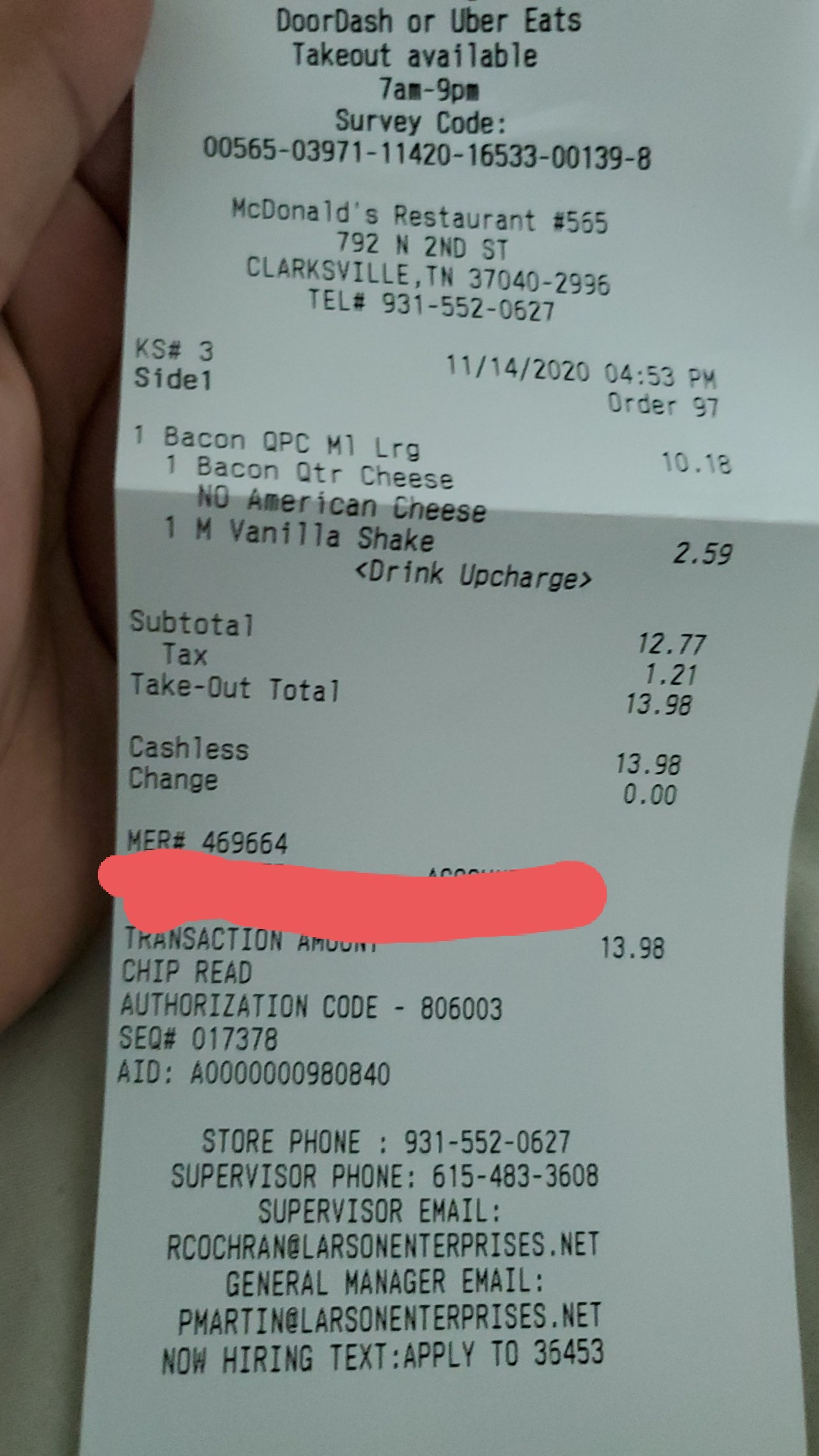 Dear McDonalds & Staff, I came to your establishment 9-17-2018 at 8:30 an Requested Iced caramel macchiato, bacon egg & cheese biscuit.