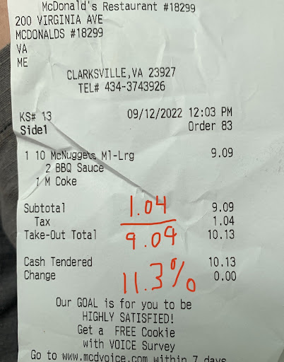 Read moreAwful McDonald's and dining experience! Last two drive thru visits staff were rude and food quality was poor. Teenage crew playing around in the kitchen and texting. Both times in drive thru I was told to park my truck and waited over 5 minutes for regular menu items (no special orders) to be delivered from kitchen. No napkins or ketchup packets with order. Limited fast food options in Clarksville, VA. and a small town environment (1,200 population) only highlights the incredible deficiencies in poorly trained staff and sub par food quality at this McDonald's location. How many poor Google reviews does it take before Management will address these issues? Will...