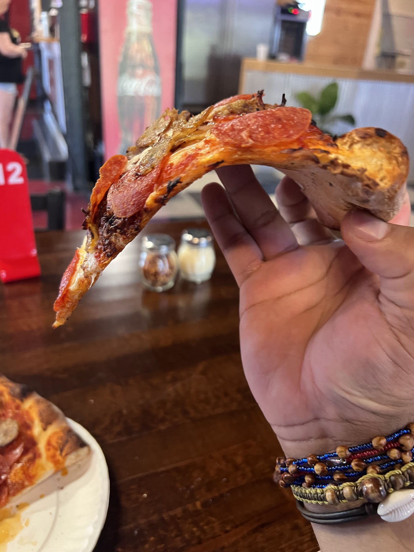Pizza was really good. I am from CT, and am always in search of a slice of home. This hit the spot! The 3 stars is for the experience. We showed up at 6:45 to order a pizza for dine in. We were told upon ordering that our order would have to be taken to go because they were overwhelmed with orders, and it would be a 45 minute wait. They’re open till 8pm. Ok…. 45 minutes wait for it to be done, ok, no problem. But puts us at 7:30. The pizza came out slightly faster than expected- @7:20pm. So I was pleased that we’d be able to go ahead and eat our dinner before closing time. As we ate, I sat in disbelief that the front of house guy proceeded to turn people away and tell people calling in orders that they were no longer making pizza because they close at 8pm. Then proceeded to put up chairs on top of the tables, while we were eating. We felt that we were being rushed out, and ate fast so the lights could be turned out by 7:40pm. These people want to WALK OUT @ 8 pm! I’ve never seen that before. I guess family run business…. They can do what they want. But very uncomfortable first ever visit...