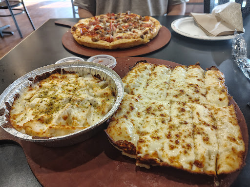 The pizza was good and as expected. However upon walking in we found two ladies sitting at the bar folding boxes with 3-5 people working in the back of the restaurant. It was around 5pm on a Sunday night. I looked around not quite knowing what to do because I didn't see anyone else in the restaurant though the door had a sign that said they were open for dine in. I asked the women if they were open for dine in and they said yes. One got up and asked me to go to the counter to place my order. They only had specials on large pizzas to where I would have to pay for individual toppings. Not good when one of them is a Super Supreme. So we ordered the two seperate pizzas we wanted and asked for our drinks. We were informed they didn't have iced drinks, only bottled. We were then asked to find a seat and wait about 20 minutes maybe longer. The guy from the back brought our pizzas to us in boxes. Um, no trays? No plates or napkins? And we waited nearly 30 minutes for them. I asked for the plates and napkins to which he replied, "I don't think we have any. Let me check." It was then I realized all I had for the order was an order ticket and no receipt. When I asked for one the girl who took my order had to go find some other fellow who eventually brought it to us (it seemed that maybe he was themanaget). For over $45 this was such a unwelcoming experience that I will not return. As a single parent I wanted a night to rest from worrying about food and dishes. Instead I had to ask for and pay steeply for everything we got and no service without irritation it seemed; aside I was an imposition. I could have bought a week's worth of groceries for what I paid for the one meal. I could have bought countless pizzas at a grocery store for the same price. Just VERY...