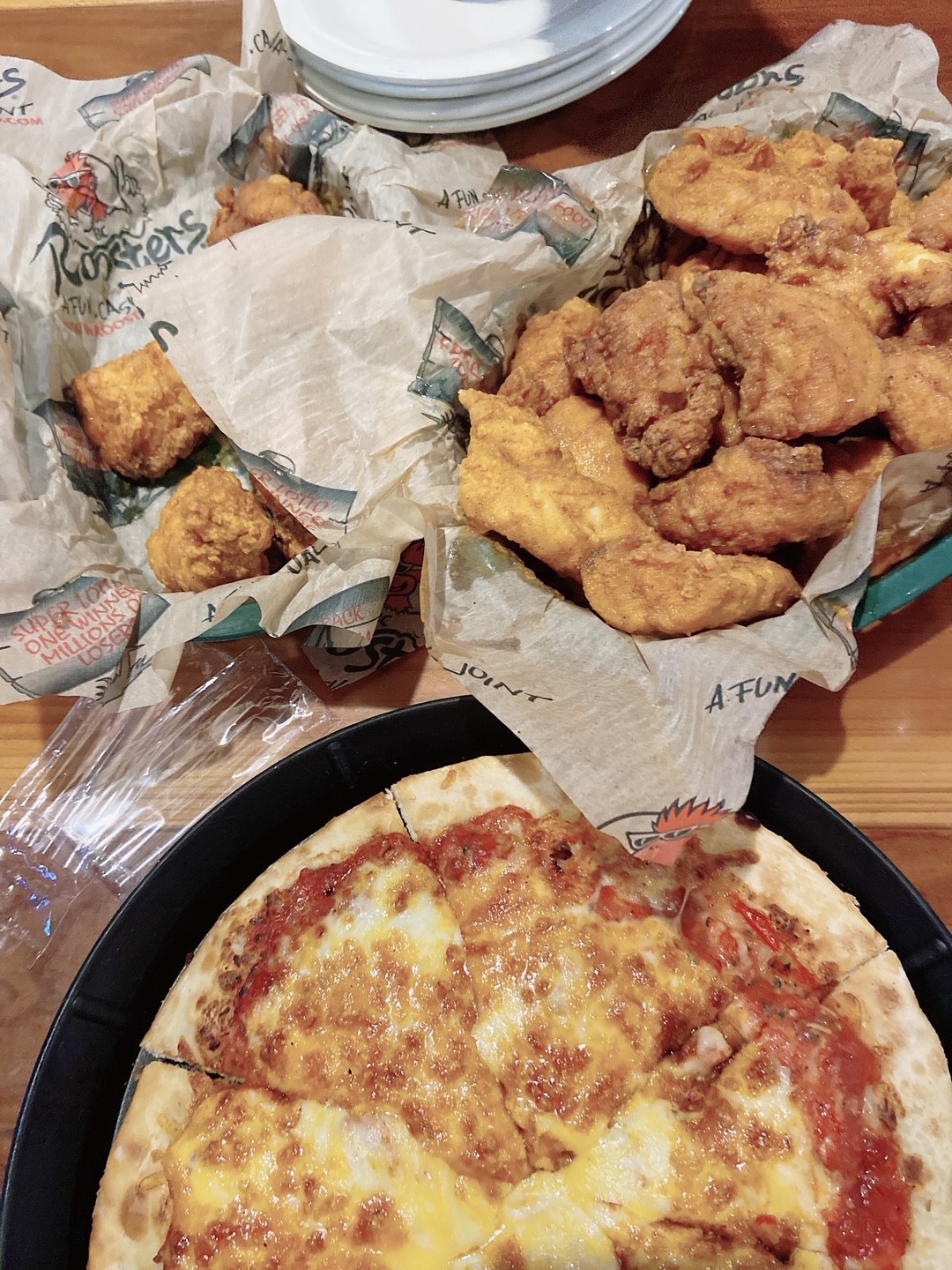 There is no halfway trying in the restaurant business, if you want to retain long-term customers. The Signature Buffalo Chicken Pizzas are poorly made at this location. I have visited other Roosters multiple times, and the Buffalo Chicken Pizzas were great every time. This is all I ever order besides wings, but if you don't put love into your Signature Pizza, what do you care to do right? I'm not going to find out.