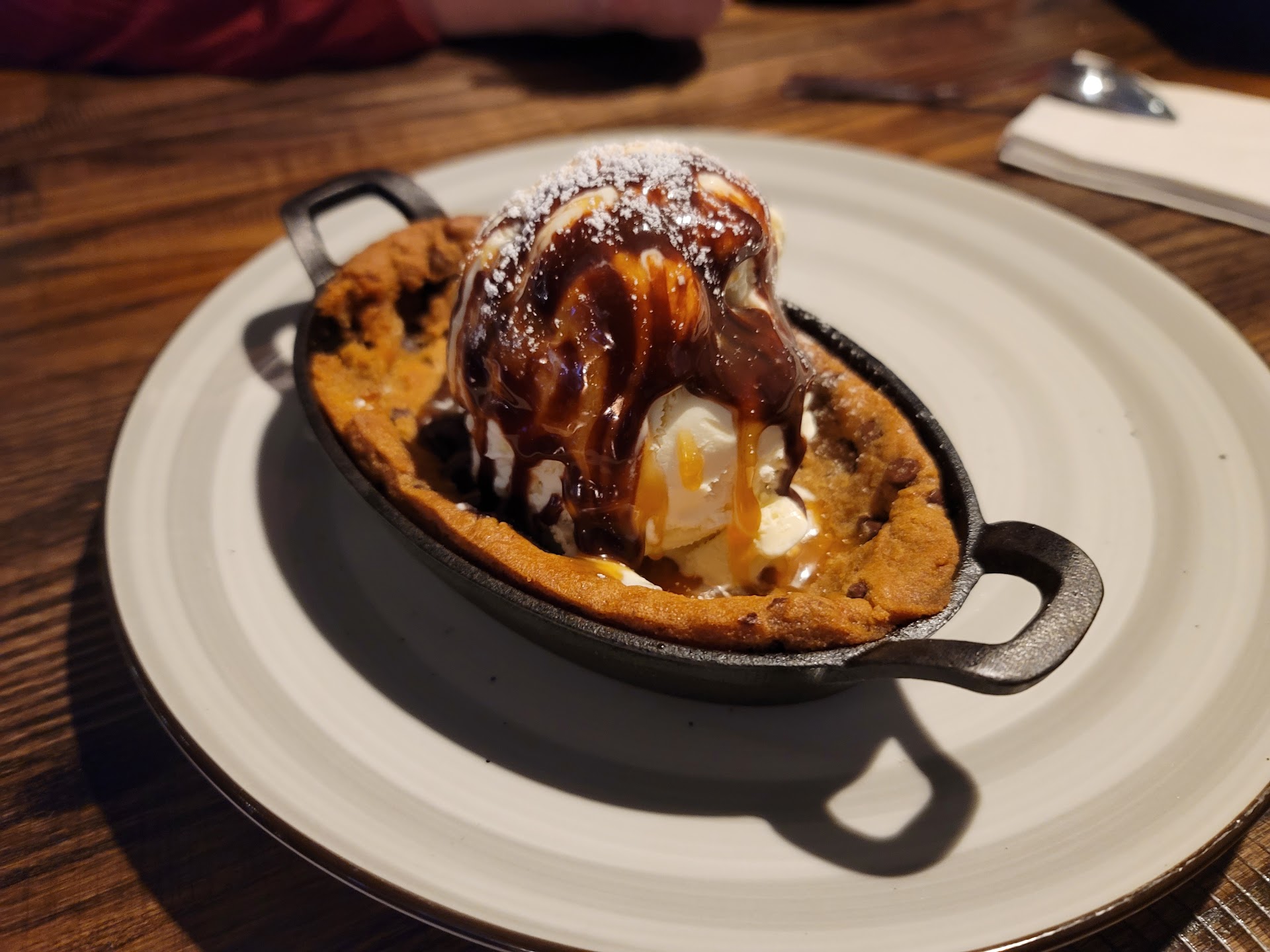 The cookie was hot and gooey with a high-quality ice cream to balance it out.