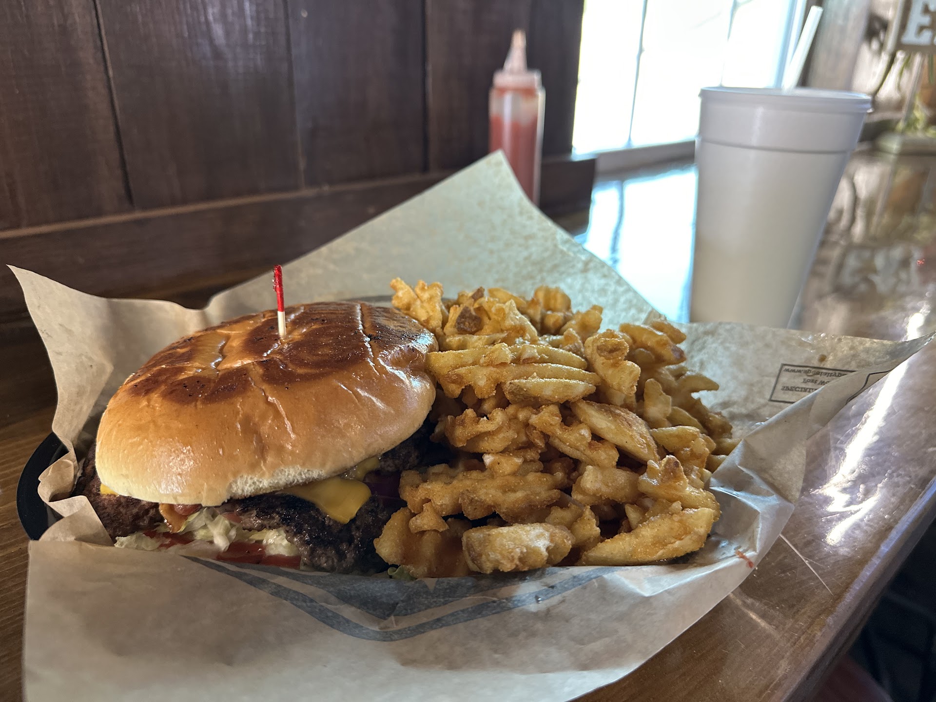 One of the best burger places I’ve been, I’m rn going to Oklahoma and stopped to eat at whatever place I found that sold burgers that wasnt sonic or Dairy Queen. I just left and knew I had to leave a review, the burgers are giant and fries are super crispy I love them. There’s outdoor and indoor seating, the inside is clean a few flies but that’s completely normal in my view, the bathroom was very clean and had the GOOD toilet paper, tissues and paper towels to dry your hands. The entire place felt so homey and safe, when I was about finished eating, a guy came in with his friends from work to show the place to them he said he came the day before and had to come back. I also heard him say the pie was really good but i left after that. They also sell snow cones but you order that outside. Great place would definitely recommend to others and I would come back if I didn’t live...