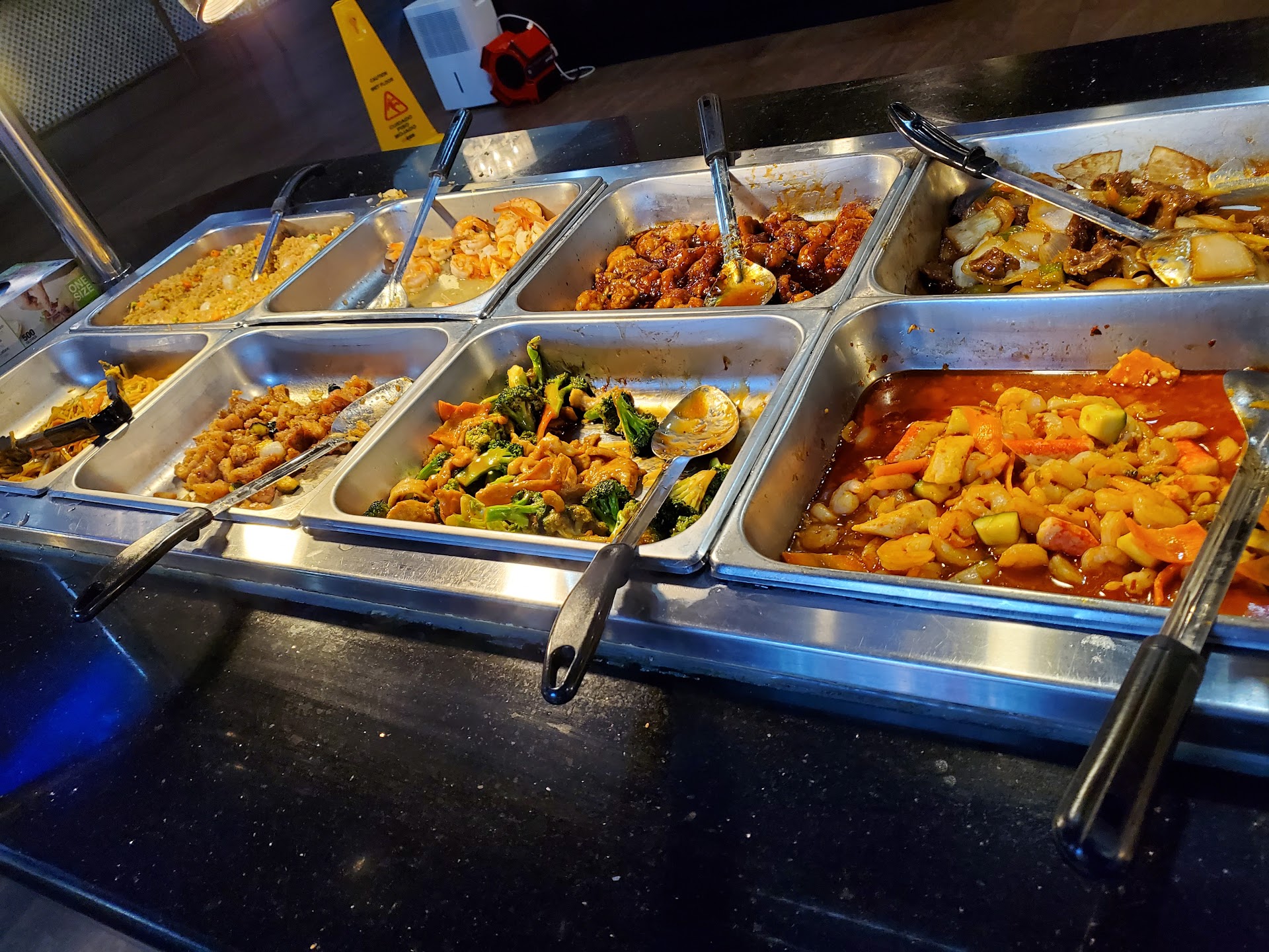 Read moreWe tried this place for the first time yesterday.... it was o.k. at best. There was a variety, but a lot of the items were over salty, the dessert bar was minimal, the sushi selection was OK but some of the pieces were unfamiliar to me when it came to taste. We watched them put a whole rack of ribs on the (visually steaming hot) buffet, my husband went up and immediately grabbed a few, he bit it, and it was cold to the touch, I felt it as well so he definitely wasn't lying about it. We immediately told one of the workers who didn't seem to understand what I said to him, so we also told the lady that worked at the front register, but nobody even attempted to pull them off the buffet at all. Coming from a food service and culinary background I know food temperatures and this was far from acceptable. I highly doubt we will be going back...