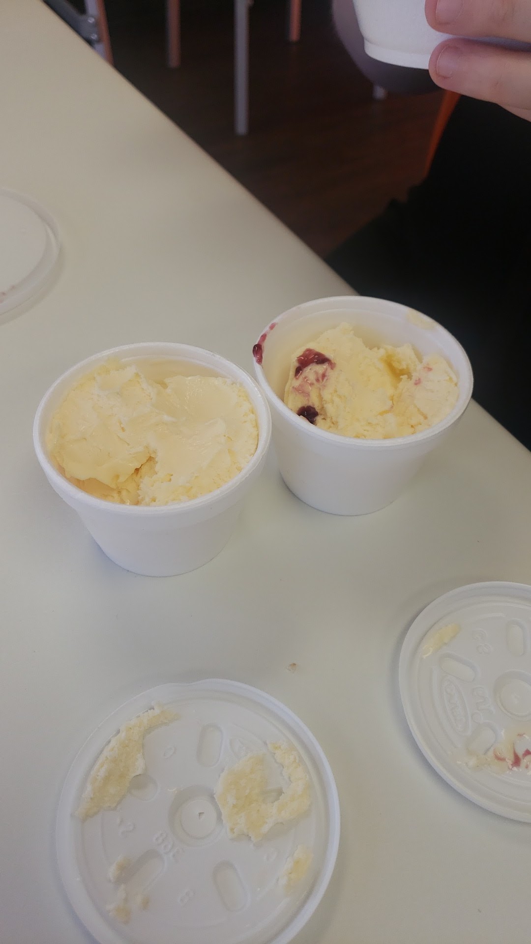 Both cobblers they served the ice cream on the side and not together as in the pictures. Both of The ice cream were COVERED in a heavy layer of cinnamon that was just overpowering.