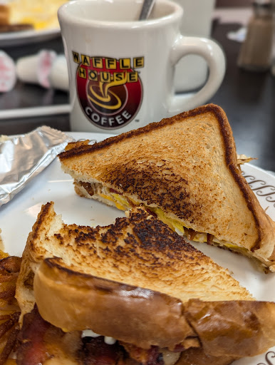 Bacon, eggs scrambled light w hashbrowns cooked well and toast w gravy. Know I know i have written a few bad reviews of this location. It has been a while and I was craving some awful waffle. I went in and there were only 3 customers. There was the manager, the cook and a waitress. The waitress greeted me as soon as I entered. She was very polite. I sat at the hightop bar since part of the restaurant was closed. I could understand why this time. Only 3 personnel. They took my order and I noticed it was a tad bit warmer than normal. The waitress explained that everyone else had called in due to the ac not working. Anyone who has been to a waffle house knows it is a glass building full of windows. When the ac goes out it is an oven. They were professional polite and I appreciate the fact that they were willing to work in that kind of heat. I gave them a sincere thank you and a decent tip. Riverside rocked this morning. The last time I complained they had 8 people behind the counter empty booths and closed half the restaurant and refused to do take out orders. Know I see who the real ROCKSTARS on...
