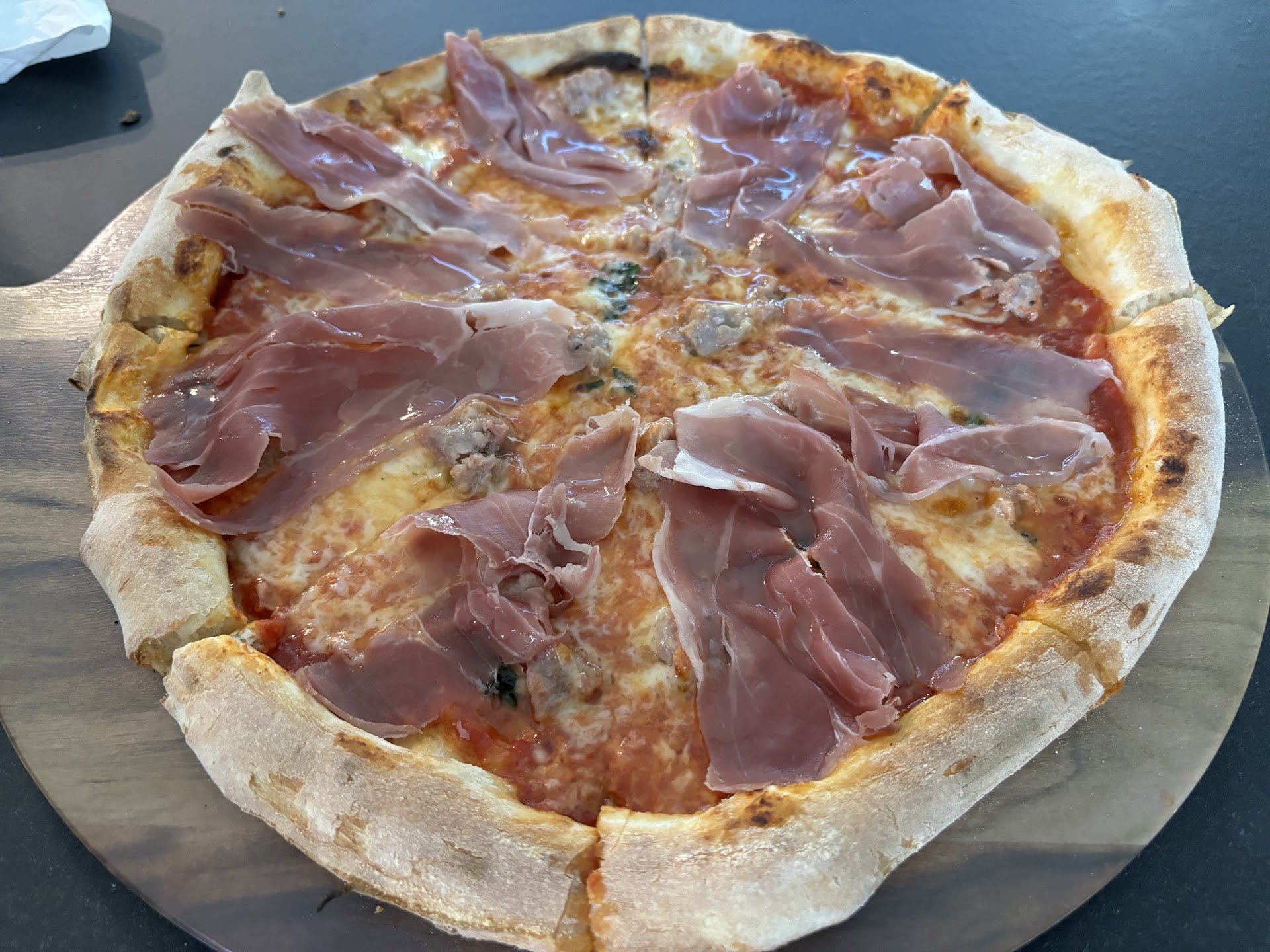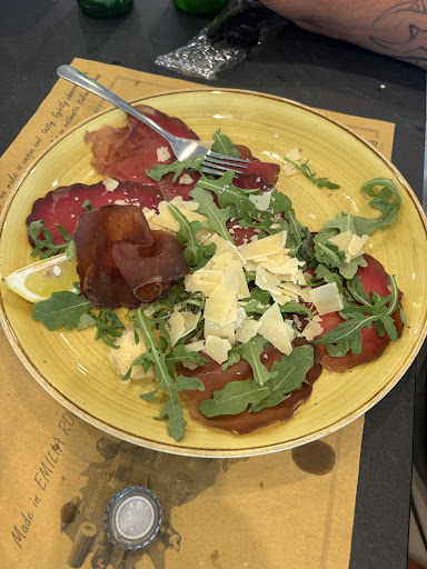 We had Tagliolini in Bianco, which was the best pasta I've ever had the privilege to eat. We tried the Gnocco Fritto Salumi Mix (Prosciutto Crudo, Salame, Mortadella) which was great. The meat was flavorful and the bread was light, and flaky. Next, we had the Saporita- a wonderful salad with arugula, radicchio(Italian chicory), green olives, cherry tomatoes, mozzarella balls, egg halves, and pancetta. It was supposed to have vinegar and olive oil +seasoned focaccia on it but they forgot it and we didn't think to say anything at the time. It was still delicious. All portions were great for the pricing and I actually loved the meals were served in sturdy to-go boxes.