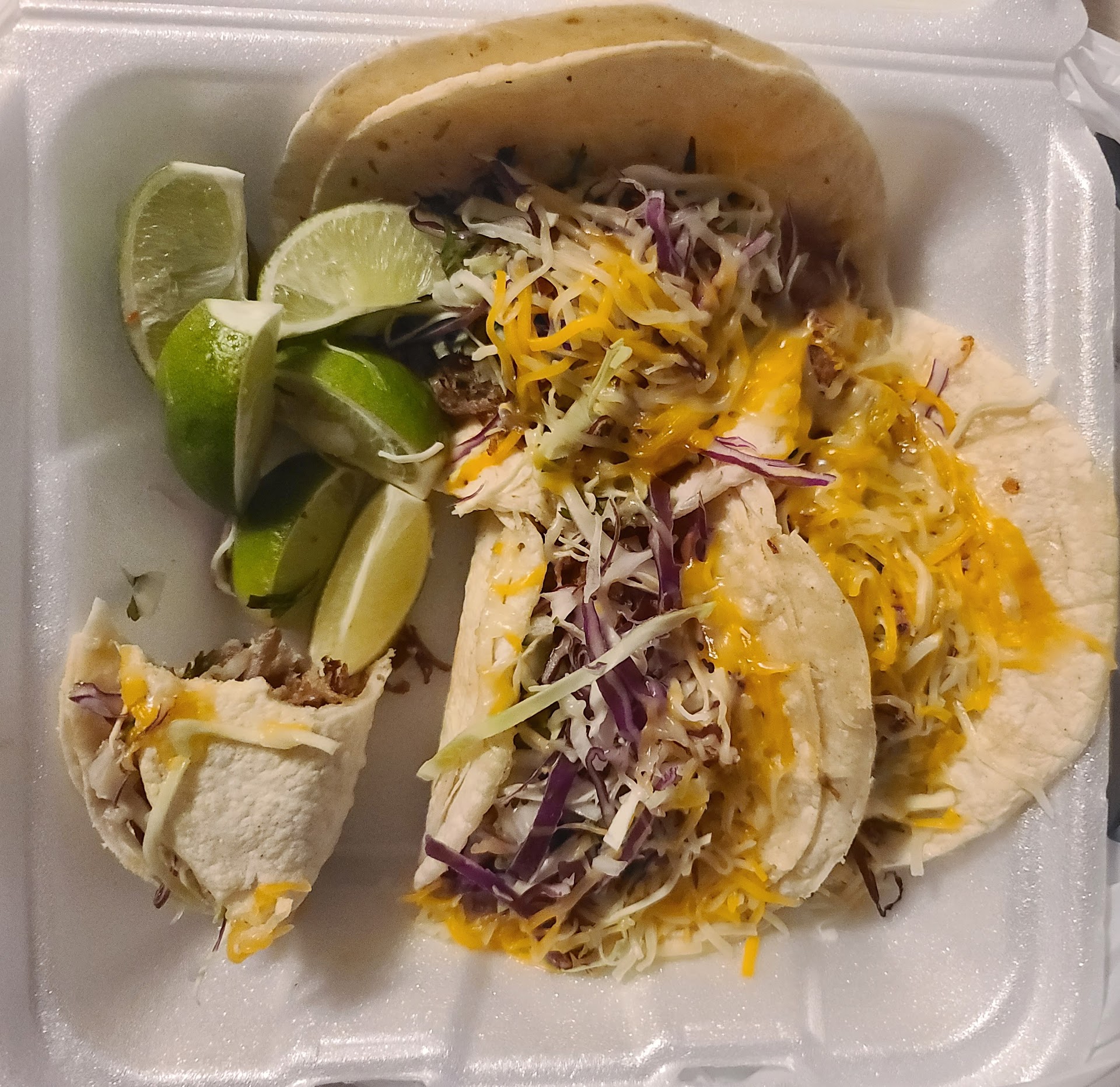 Read moreI'm critical and very picky. Not to mention being pregnant has made me overtly cautious with my nose of all the foods I used to love. I have lived in California and must say these are legit the closest authentic tacos to the ones in California that I have had here - near base. Their name does justice to the place and If your passing by stop on in! Not only was customer service taken seriously by the man at the counter tonight (English speaking fellow), but the workers take your orders seriously, make them correctly and with love. Shout out to the cooks seriously. I built my tacos from scratch as you are allowed to. I chose to try 4 of their CORN soft tacos with pulled pork (cooked all the way but not dry and the meat was flavorful) with fresh cilantro, fresh cabbage, onions, cheese (wish they had white crumble cheese 🥺) with green salsa (good heat and flavor) and limes .It sent me back to my best friends kitchen in California who made the best carnitas pulled pork tacos for me. When I said I was from Kentucky and liked mexican food; She laughed and she made me REAL authentic mexican food- that her grandmother taught her and honest to God it is hard finding anything similar out here. I think it always depends on the staff, the front counter man and the food they make is what really stood out to me with todays night shift. It wasn't super busy and this was my first time here. However, I highly highly recommend you give them a try. I wish they were more affordable but, for the place it sent me while eating it- I'd pay it again. I had to stop eating and immediately write a review. This place was also spotless and smelled like lemons coming in -which I appreciated with how sensitive my pregnancy...