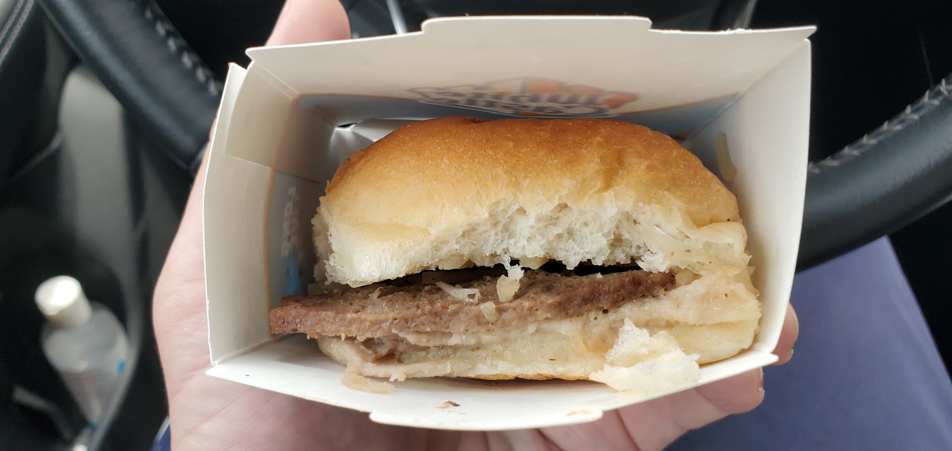 Read moreWho in the H double hockey sticks came up with the new drive thru? I waited 5 minutes for my order to be taken, 5 more minutes in line and eventually drove off because there were 2 or 3 cars in front of me. I never drive out of line...i was so upset and HUNGRY! The new set up is confusing...you drive up to a row of orange construction cones which give a message of stay away from the building (it looks tacky) and there is this crazy sliding patio door. The poor girl that waits on you has to walk all the way outside to collect payment and bring you your food. This makes everything take so much longer and doesn't make sense! Just her smiling face out a window handing me my bag of food was good enough. Not to mention how unsafe this is...someone out in the open, alone and handling money next to a gas station, a wooded area, a freeway on ramp surrounded by empty parking lots. On top of this the person is out in the weather with no awning. Good job White Castles...NOT! Do you not give a darn about your employees health and safety? Go back to what has worked for how many years. I would like to see the person that came up with this working out there this winter...see...
