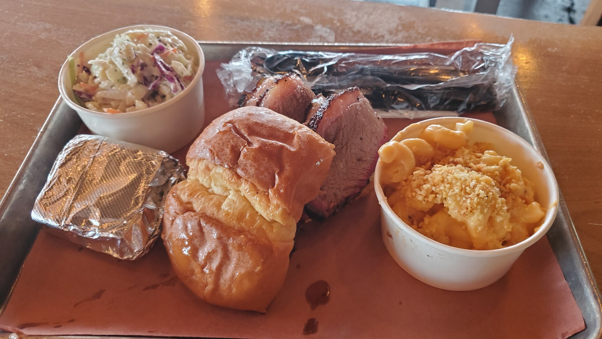 Read moreA different four letter word besides ‘Wood’ is probably more appropriate here based on our experience. The meat itself was decent, but the sauces and sides were absolutely horrible. The mac and cheese noodles were way overcooked and the cheese sauce itself was bland and gritty. The cornbread was cold and tasted like it was old—reminded me of a cheap Jiffy mix. The sweet potato mash was gross. All of the bbq sauces were brutal.