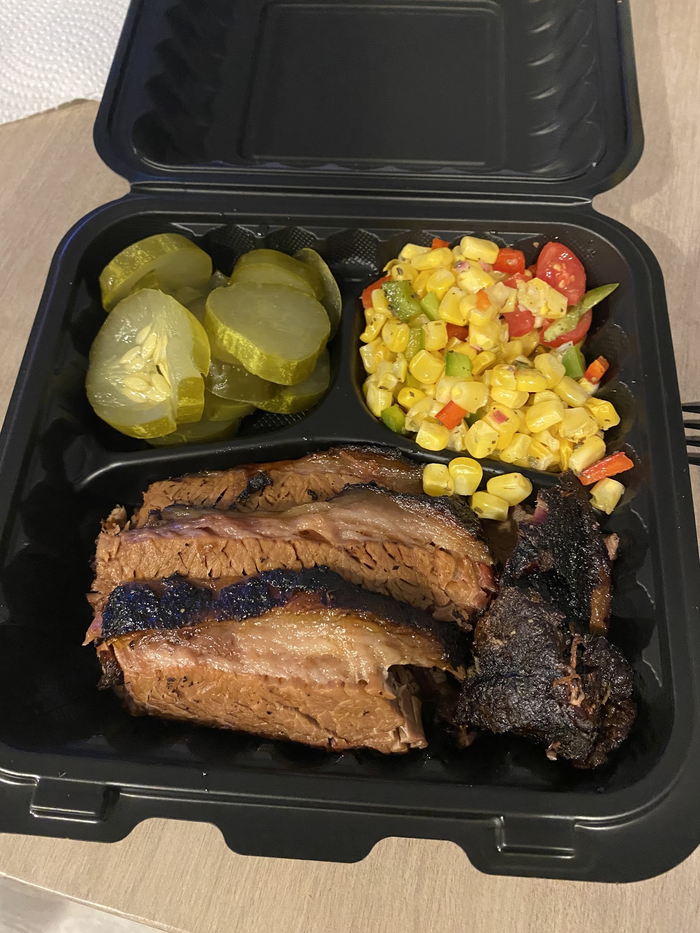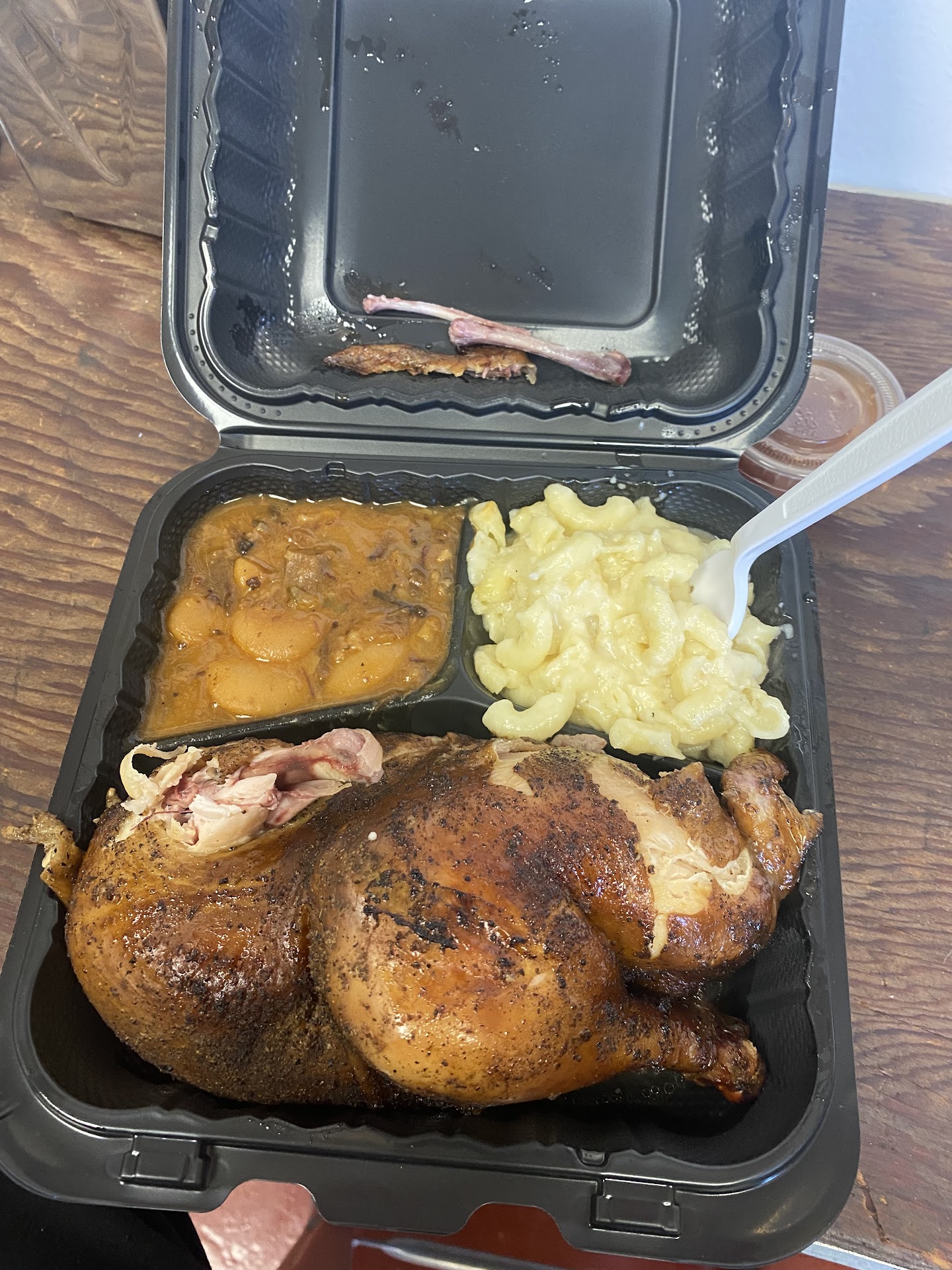 I found this place today and decided to try it out. OMG everything I tried was amazing. I ordered the brisket, 1/2 chicken, the pasta salad and the baked beans. I must say that the baked beans were the best I ever had. The brisket was awesome. I also ordered the teriyaki beef jerky it was tasty but to hard for me to chew. Hats off to John the owner. He was a very nice gentleman to talk with. Can't wait to try the ribs and broccoli salad !!! If you haven't tried this place , you really should. I think you will be pleased that you did. Oh and they accept...