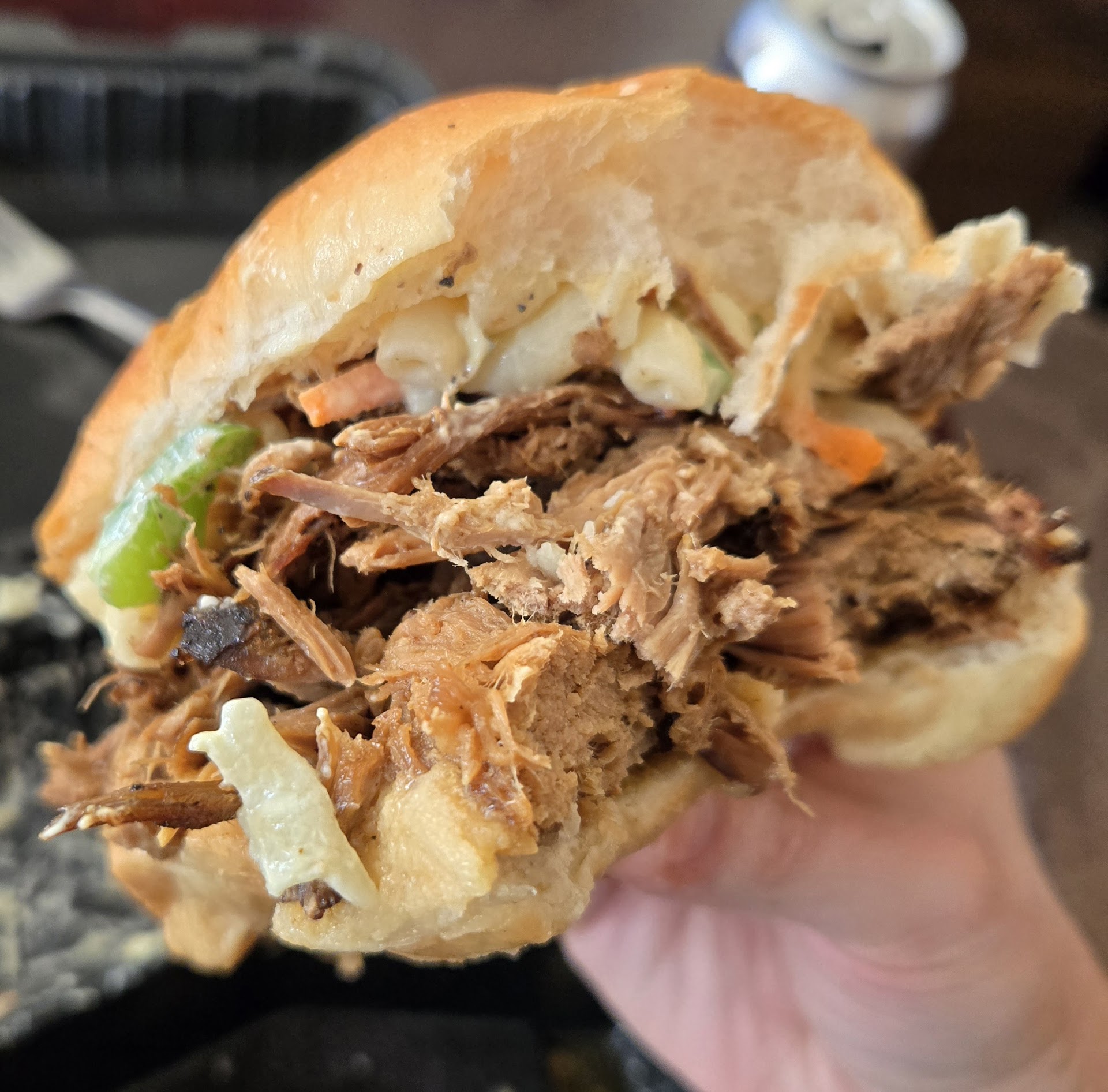 Read moreIf you want a BBQ place with large portions and great flavor this is the place for you. I could barely take this picture because I just wanted to eat it instead. Truly tremendous food. The sauce was unreal. If you go here get more sauce, really. Carolina sauce was my fave. Mac and cheese was great, loads of flavor. I loved the macaroni salad, it reminded me of coleslaw so I put it on my sandwich. It's super clean inside and was fast to get. 10/10 I just wish food didn't...