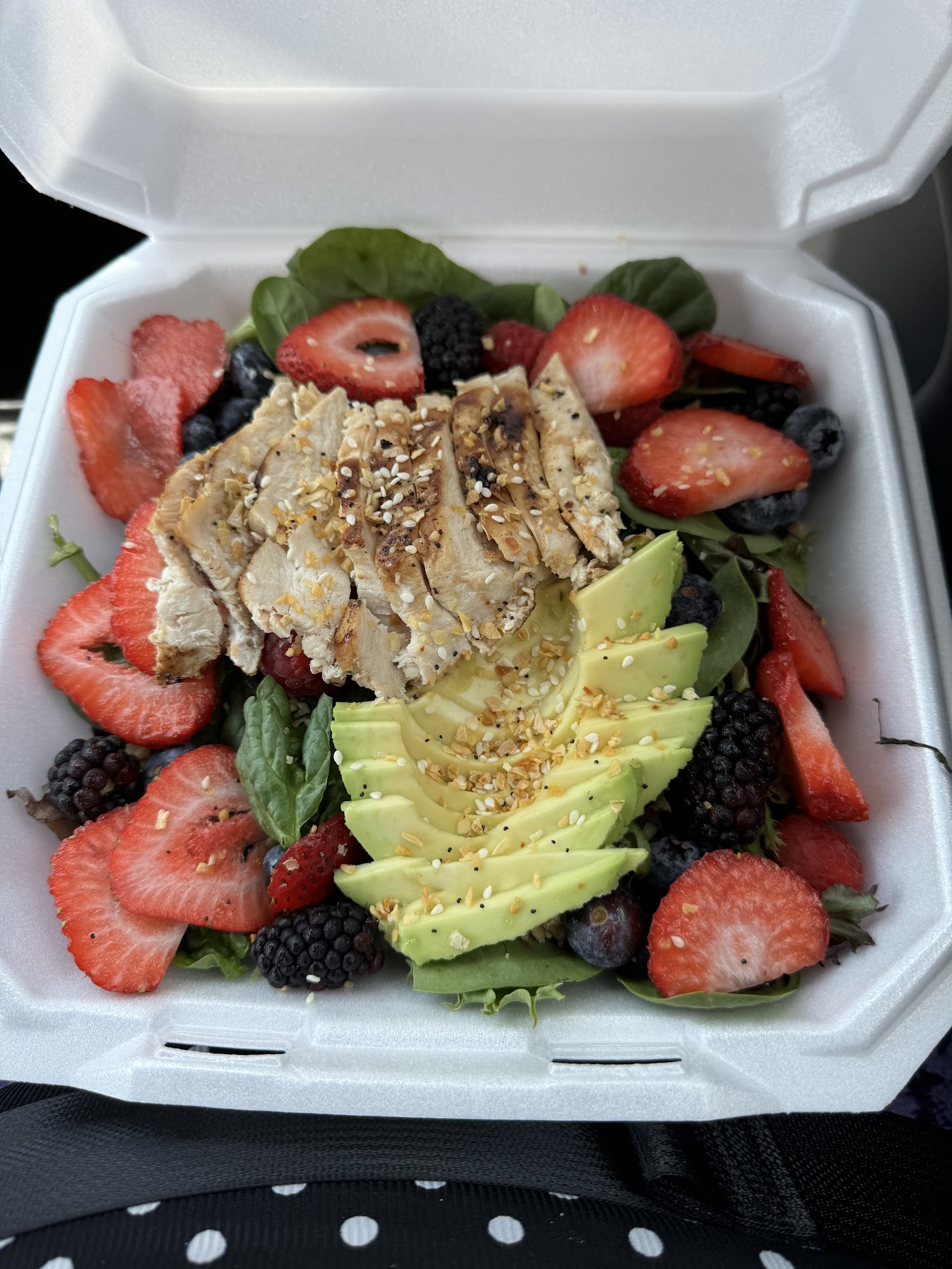 We stumbled upon this restaurant through a search on the map. We placed our order on the phone for carry out. We ordered the Italian sandwich, the summer berry salad, and the childrenâs chicken tenders times two; one with coleslaw, and one with fries. Everything was AMAZING! The quality of the ingredients was outstanding. The fruit was fresh and clean, the grilled chicken and avocado on the salad were perfect. Everything was prepared with care and thoughtfulness. The portions were generous and filling. The restaurant was clean, cozy, and welcoming. We were able to use the restrooms while we waited for just a brief moment for our order to be ready. The staff even let me request some stickers for souvenirs :). We grabbed a fresh iced tea and a fresh red velvet monster cookie. And neither disappointed! As a tea snob, I was very impressed!