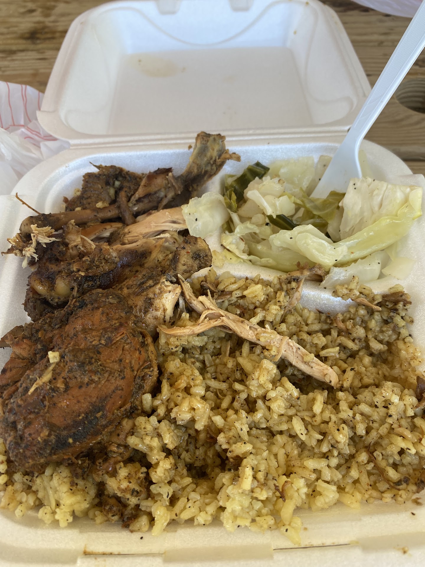 Read moreDecided to try this restaurant today with a coworker since I am not usually in the area and I always like to try new restaurants when I can. Let me just say- this place exceeded all expectations. The review photos look so good but the taste is even better. Chicken literally melts in your mouth and the yellow rice and cabbage were delicious and flavorful and the perfect complement to the chicken. The owner (Iâm assuming to be the owner as she said it was her Mac and cheese recipe) was so sweet and gave me a sample of the Mac and cheese to try! The Mac and cheese was very good as well, had a very unique taste and I already know I will be craving this place when I am back in Cary and will be happy to make the drive for such good food. I already ate like half the chicken before I took this photo but the portions are...