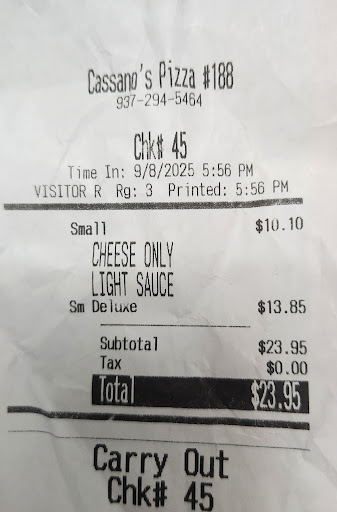 Read moreI remember when my dad would go visit my grandma in Ohio, and would fly home with 4 Cassano pizzas for us in California. And every time we'd come to Dayton, we'd head to Cassanos. I always claimed my favorite pizza was Cassano. Their pizza crust was so delicious, and a bit of crunch to it, not found in other pizzas. I'm a grown up now, and my dad passed away, and every time I make it to Ohio, I order a Cassanos pizza. The last few times I've come to Ohio, I noticed that the pizza wasn't crunching like I was used to, and I chalked it up to maybe somebody cut corners. Till this May, 2024, I came to visit for Mothers day. I called to order pizza, and I asked if they could use extra cornmeal on my crust and I was informed that THEY DON'T USE IT ANY MORE!! Whyyyyy????? That corn meal crust set your pizza apart and put it in a class by itself. I would love if you'd bring it back, as I'm sure lots of others would too.. Lots of my relatives don't eat at Cassanos anymore for that reason. The pizza is still good, but doesn't have that extra oomph that the...