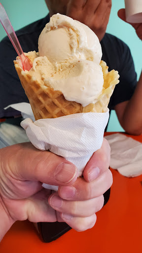 It's extremely rare that I give 5 star reviews but this place is 10 out of 5 stars!! When we walked in there were 9 or 10 people in front of us and another 7 came in behind us. We waited less than 9 minutes to be happily greeted and served. The young women working there were lively, professional, efficient and worked like a well choreographed bakery behind the counter. But let's talk about the ice cream... I had one very, very generous scoop of orange cream ice cream that was absolutely divine! When I tell you it took me back to a1977 waiting with all the neighborhood kids for a PushUp off the ice cream truck - I mean I dreamed of my childhood last night because of the ice cream! I do not believe I've ever had ice cream that good in all my life. My husband had two very generous scoops (chocolate and strawberry) over these adorable little powdered sugar coated donuts. It had homemade whipped cream, chocolate sauce and chocolate shavings and a cherry. I didn't get to take the chocolate or donuts but the strawberry ice cream was to die for. It was fresh summertime in my mouth. The ice cream isn't too sweet and Alex the fresh strawberries to shine. As we were finishing we realized their first bathroom door was locked from the inside. One of the young ladies was attempting to unlock it with a debit card and my husband offered to unlock it if they had a butter knife. It took him about 15 seconds and it was unlocked, they were gracious and thankful. While we were doing that we finished out treats and watched then preparing to close. Like I said, it was like watching a well choreographed ballet. The entire facility is spotless, even behind the counters and their work areas. I'll be back regularly and you...