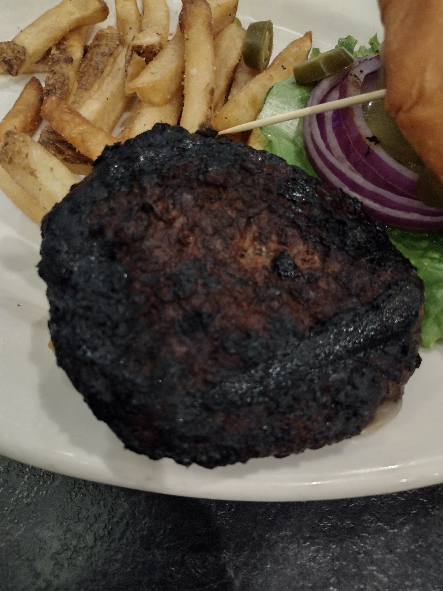 On 6/17/25, a friend and I stopped to get a quick bite to eat on our way home from a Dr appt. I had eaten there before and always had a good experience, but on 6/17, it was not the case. The restaurant appeared dirty. It definitely needs some heavy cleaning, but that is not what our complaint was about. Although it did not appear busy, it took us a few minutes to get seated. We arrive right at 12 noon. The server took our drink order and shortly after took our food order. We waited close to 30 minutes for our food (a rueben and a patty melt). Both sandwiches were served with toasted bread which was basically black from being over toasted, and the fries were cold. Having worked in a restaurant setting, the plated food should never have left the kitchen! We mentioned our complaints to the server, who was young and seemed inexperienced, but no accommodation was suggested. We tried to eat but the food was just not edible. The server brought the ticket and asked if we wanted a box for the sandwiches. My friend replied that we didnt need a box and that the food was not good and asked if could there be an adjustment to the ticket. The server said she couldn't, but she could get the manager. The manager came and we explained the problem. Her words were very sharp, loud and very rude. She snatched the ticket out of my friend's hand and returned with a ticket reflecting a $5 discount. We didn't expect free food, and do not mind paying for good food, but the rudeness of the manager will be the reason we never return. All said and done, we did leave the server a...