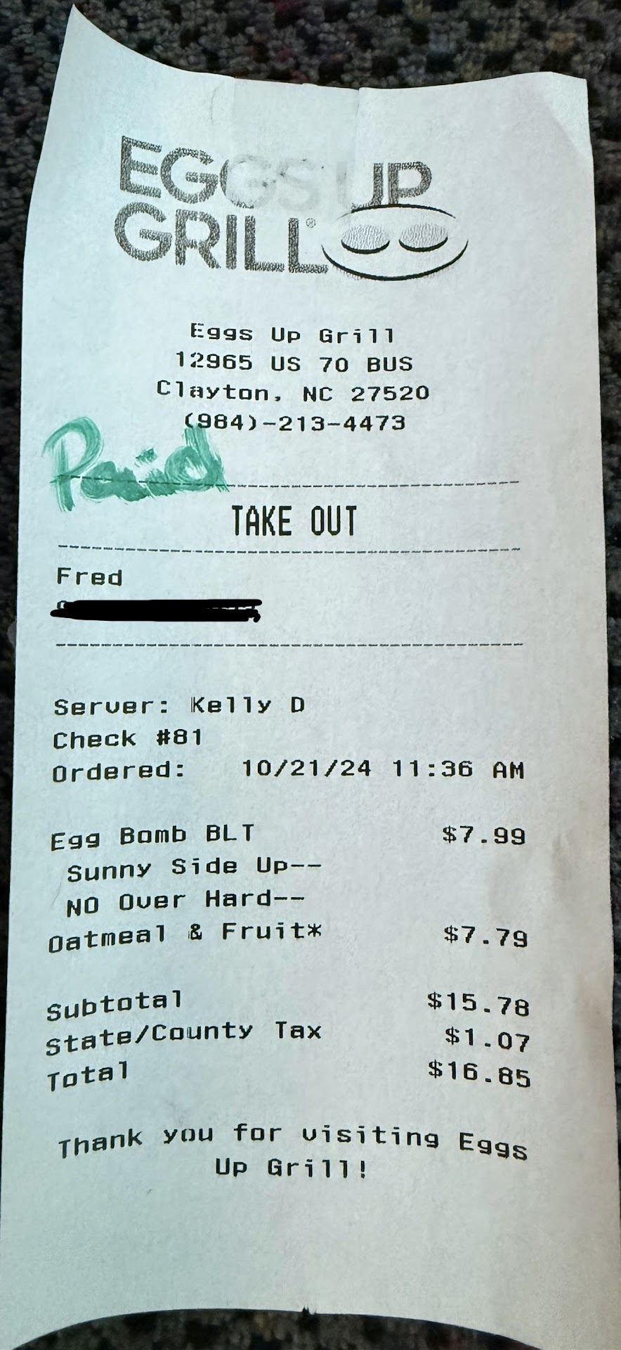 Read moreSo 1st timer here, my mom came to visit and said she wanted to try this food chain restaurant. I wasn't so sure because she always picks breakfast places that have limited selections and high prices. But let me tell you...this wasn't that!!! Prices were comparable to Wafflehouse (not same stuff and still couple dollars more but comparable). I got the Steak and Eggs ($13), also came with grits and toast and a tomatoe garnish. Now I don't usually eat tomatoes by themselves, but when I tell you it was seasoned so well I had to eat it...no lie. The steak was delicious. Now, this is not a steakhouse so don't expect your steak to be cooked exactly as requested 😅. I asked for medium well and mine was fine, but someone else at my table got the same thing and it was more pink than Grey....they didn't complain...so long as it's not bleeding. Another person in my party had the shrimp and grits...it looked good....several medium sized shrimps in there and a good helping of grits. Also the French toast sticks looked good also. It has diner vibes, but mostly tables...just a few booths. However, it's a large space. We came around 12:30pm on a Saturday and it wasn't alot of people. Our waitress could've came around a bit more, but honestly the food surprised me so much by being amazing I'm not going to discount my review. It's located in the same area as the Walmart in Clayton. Go like your going beside/behind the GoGas Walmart Gas Station. Everyone enjoyed...