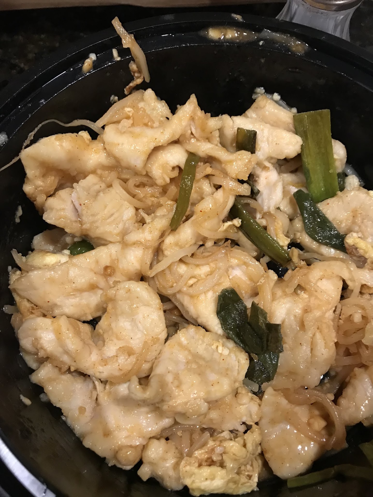My wife got the drunken noodle. Tasty but same thing with the onions, nearly raw and crunchy. Kind of left you with a feeling of onion breath after dinner. She got the shrimp though and it did come with ten good sized shrimp.